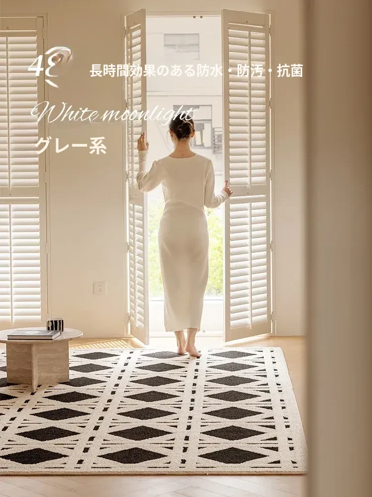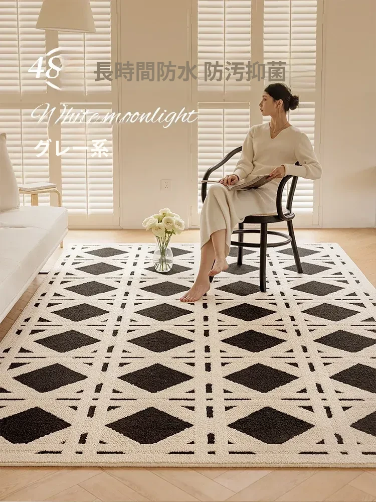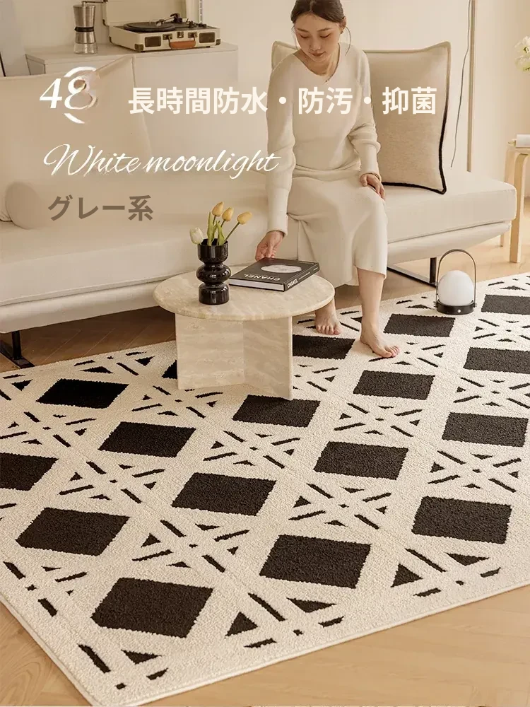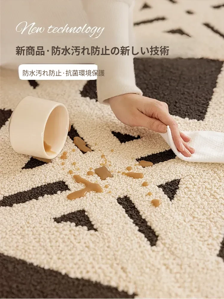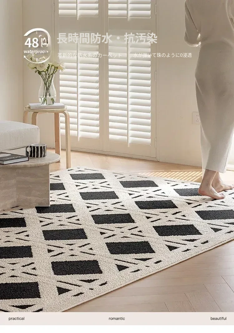 現代的シンプルなリビングルーム用カーペット - 高級感あふれる軽やかなデザイン!書斎や寝室、ベッドサイドに最適で、防水・防汚機能付き。ソファやテーブルの下にもぴったりなアイテムです。