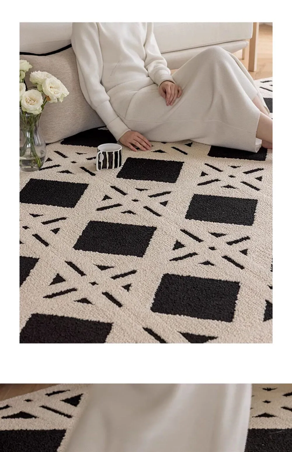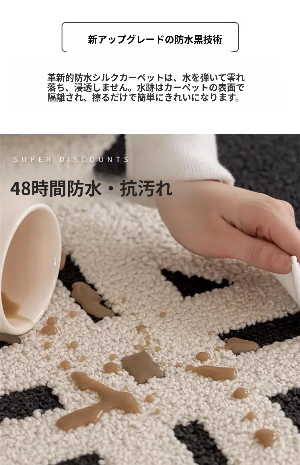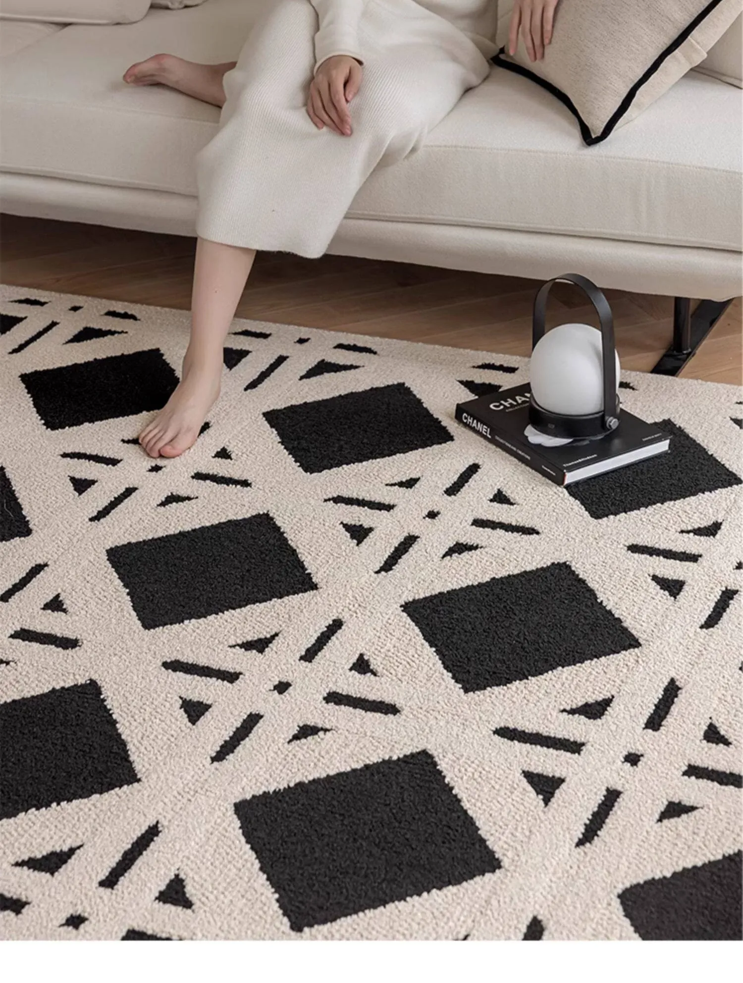 現代的シンプルなリビングルーム用カーペット - 高級感あふれる軽やかなデザイン!書斎や寝室、ベッドサイドに最適で、防水・防汚機能付き。ソファやテーブルの下にもぴったりなアイテムです。