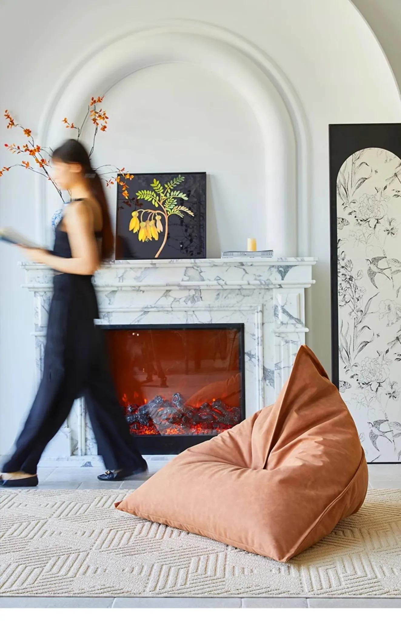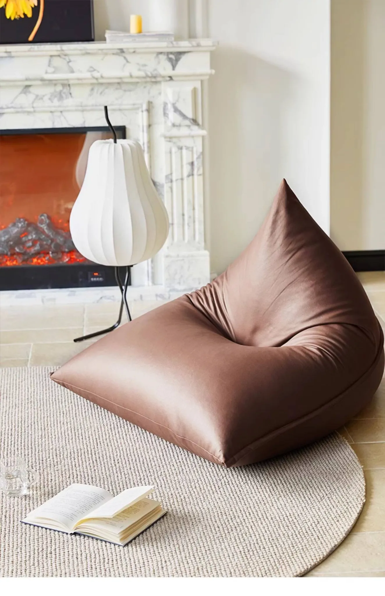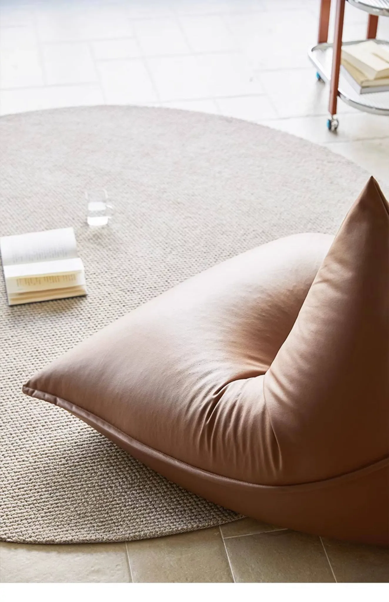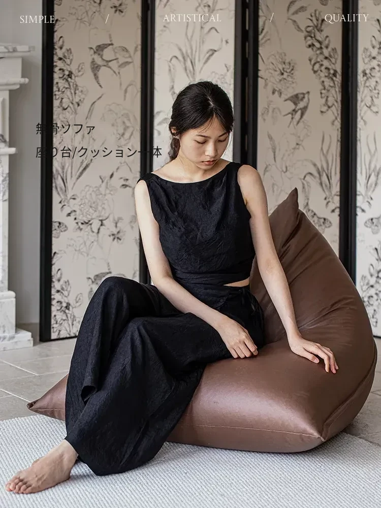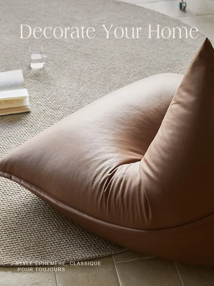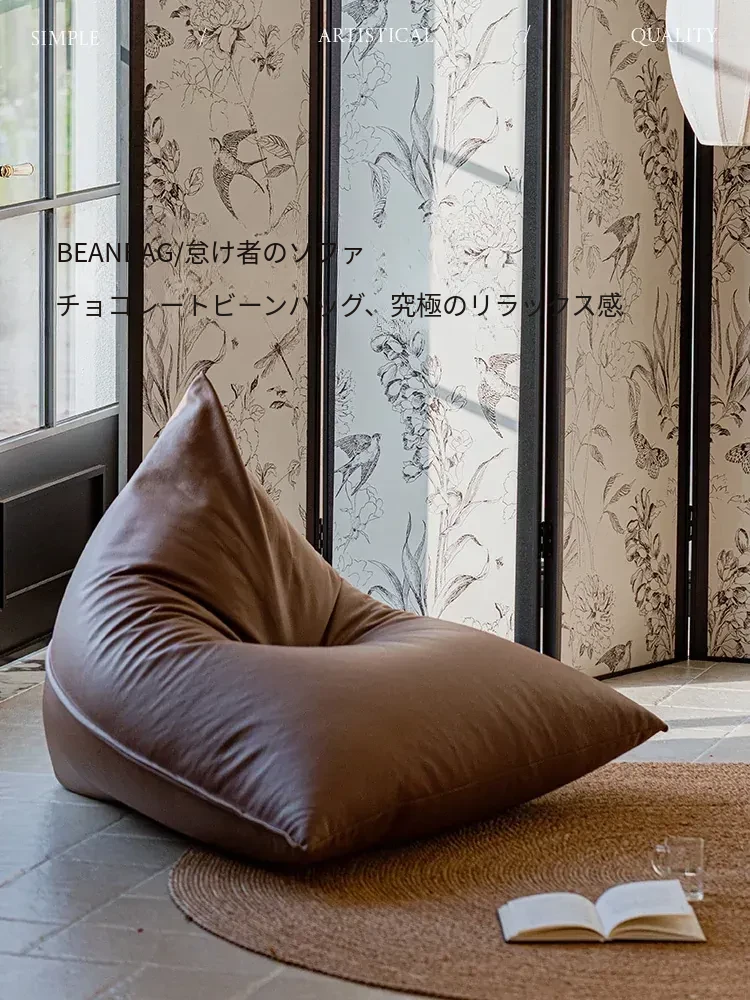 現代ミニマリストデザインのラグにぴったり!大きな三角形ビーズソファクッション、寝転びやすい快適さ。バルコニーやタタミスペースに最適なリラックスアイテム!