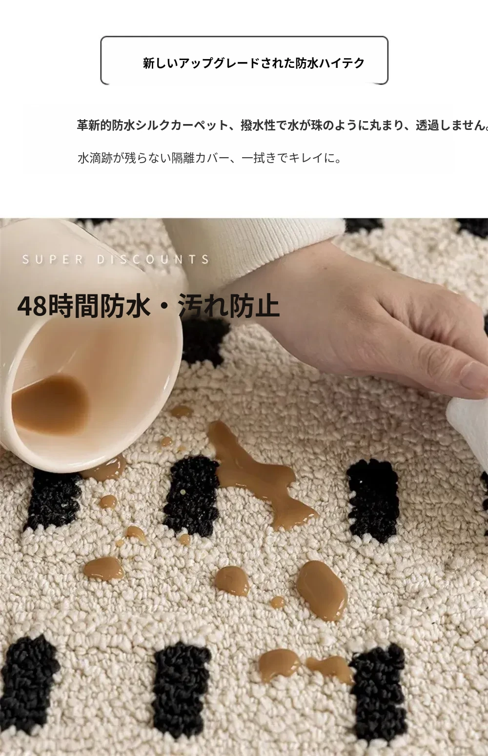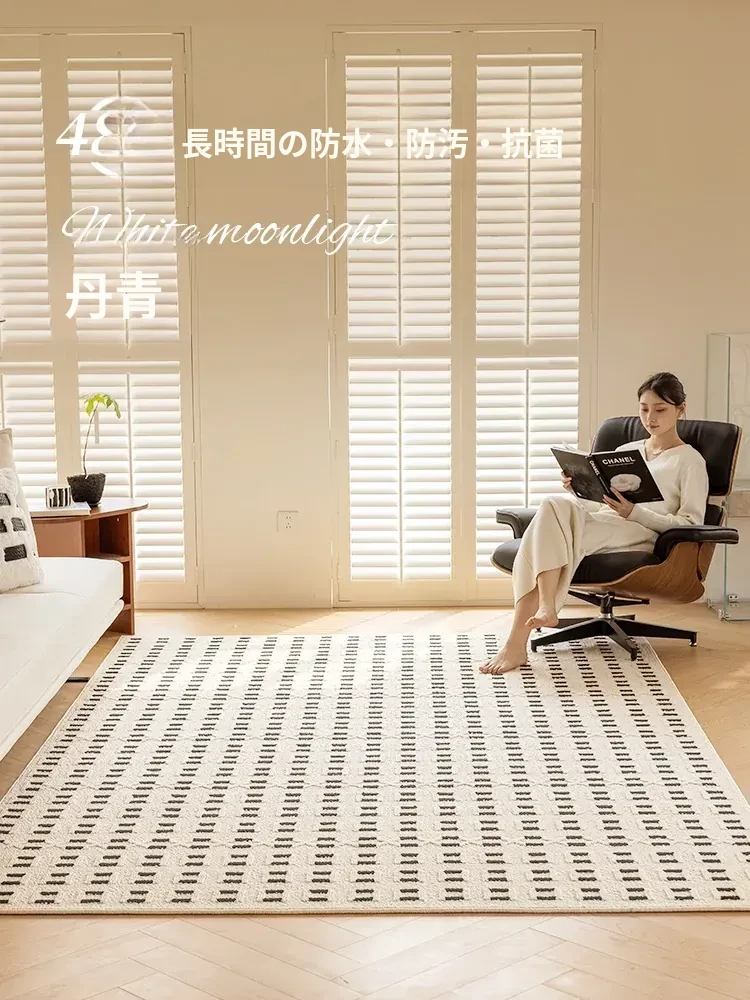モダンスタイルのリビングルーム用カーペット、防水&汚れ防止、簡単お手入れ!ソファやテーブルにぴったりなシンプルでラグジュアリーなデザイン、寝室のベッドサイドにも最適です。