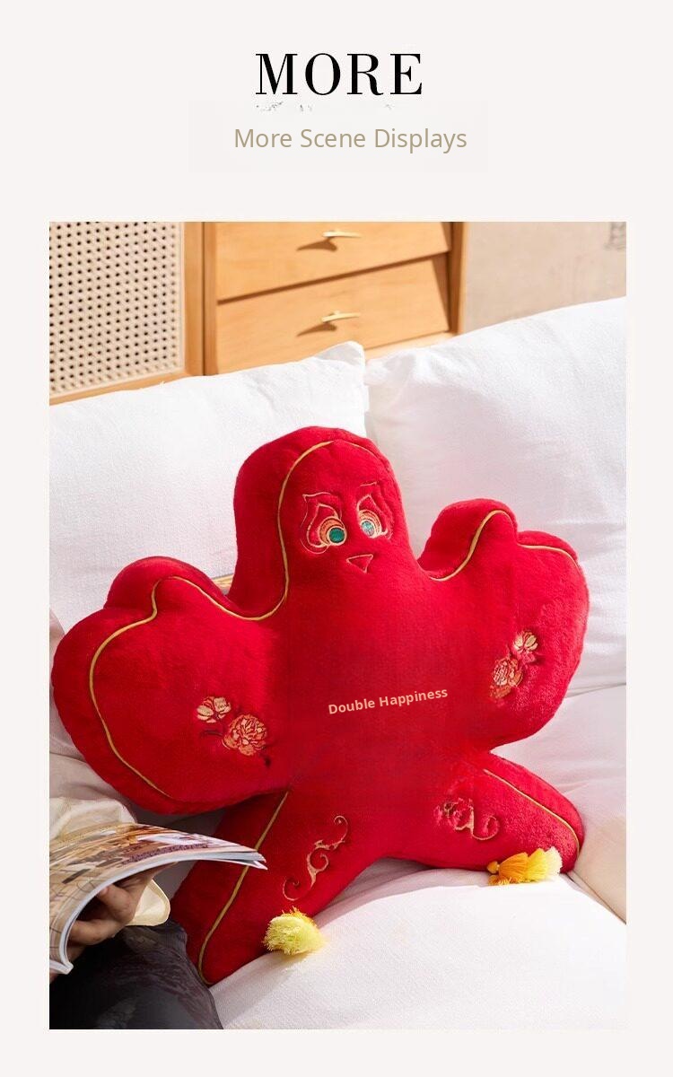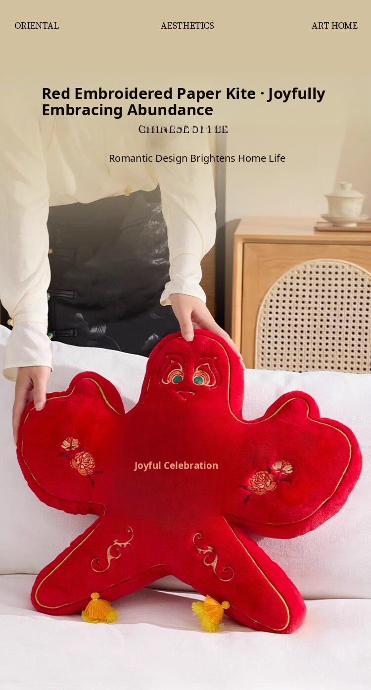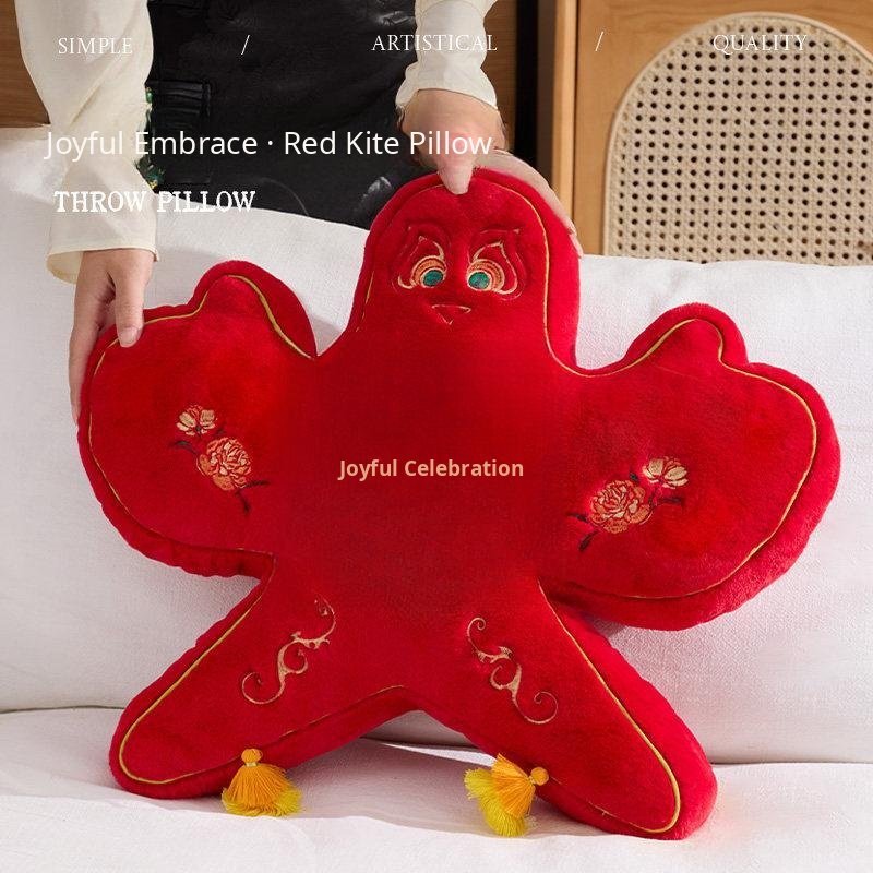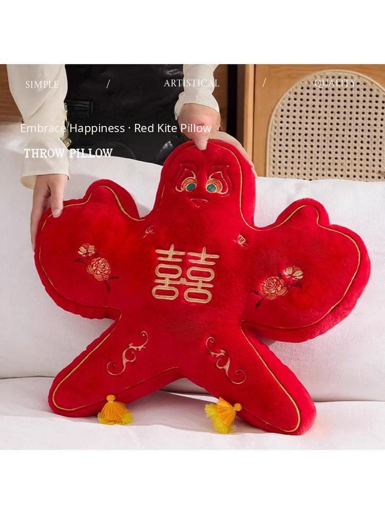 New Chinese Style Double Happiness Kite Pillow - Elegant Sofa Cushion for Living Room, Perfect Wedding Gift with Embroidery for Newlyweds' Home Décor