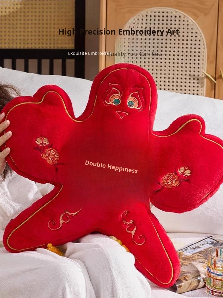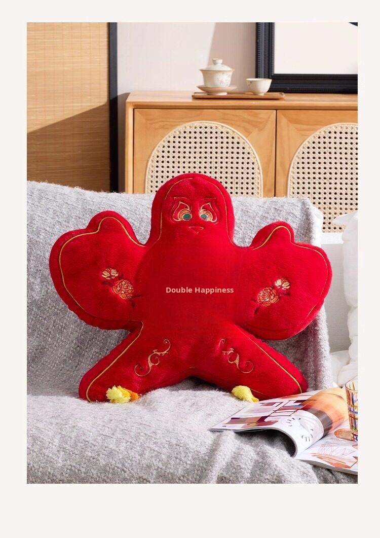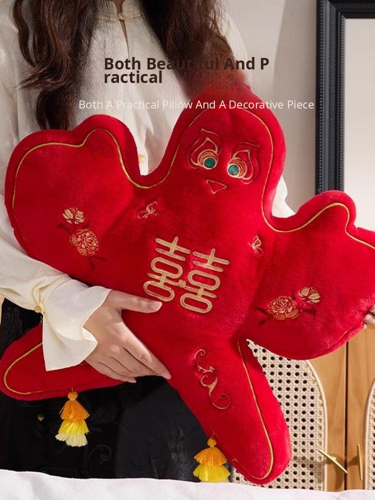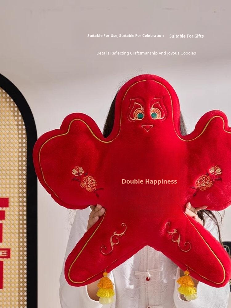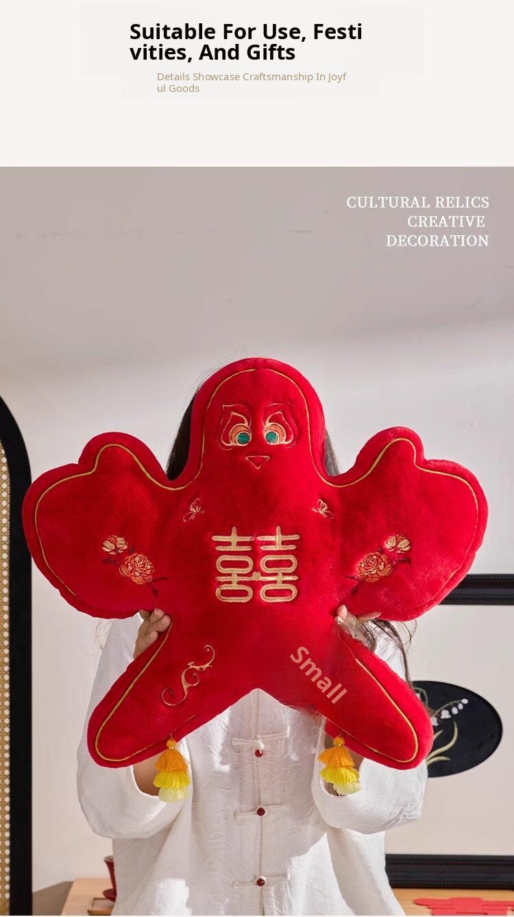 New Chinese Style Double Happiness Kite Pillow - Elegant Sofa Cushion for Living Room, Perfect Wedding Gift with Embroidery for Newlyweds' Home Décor