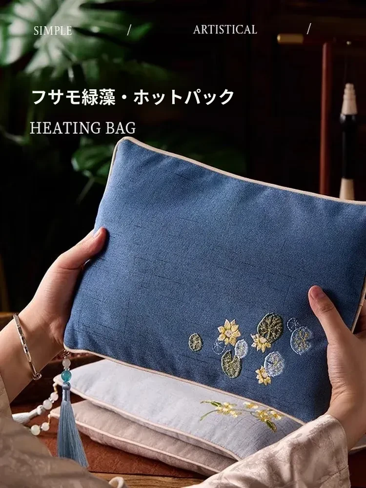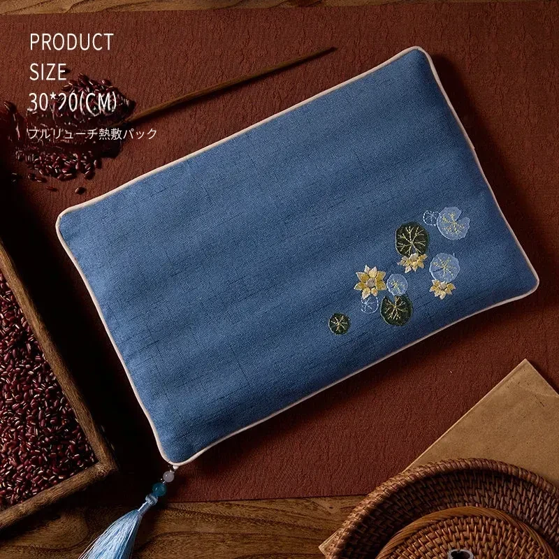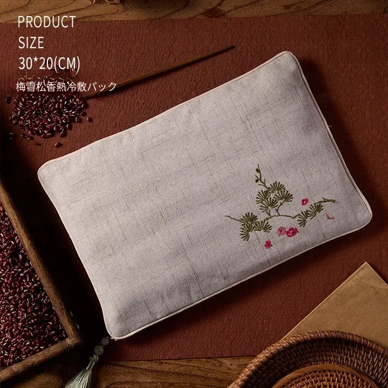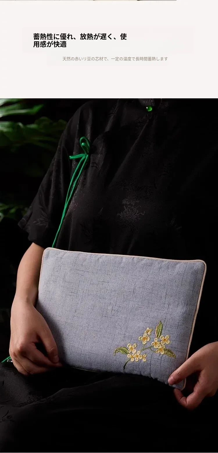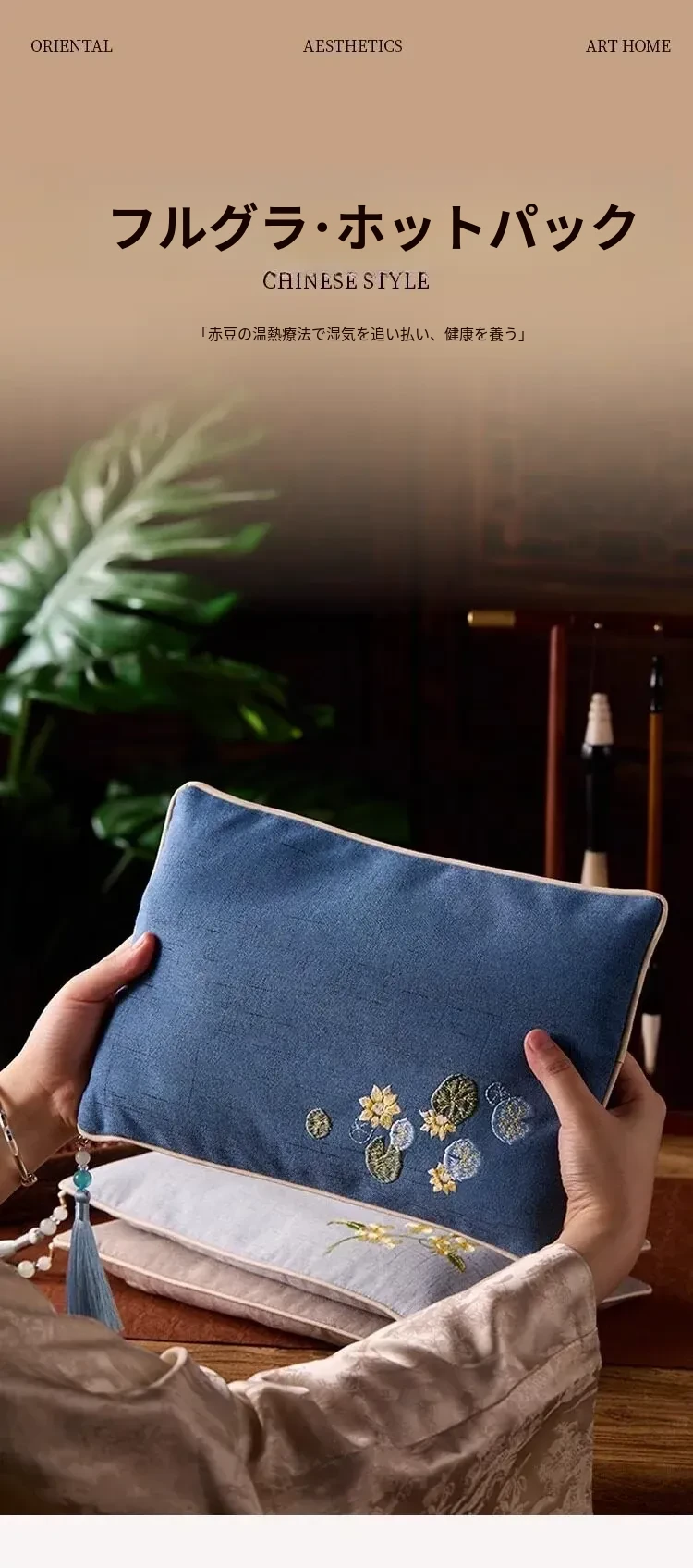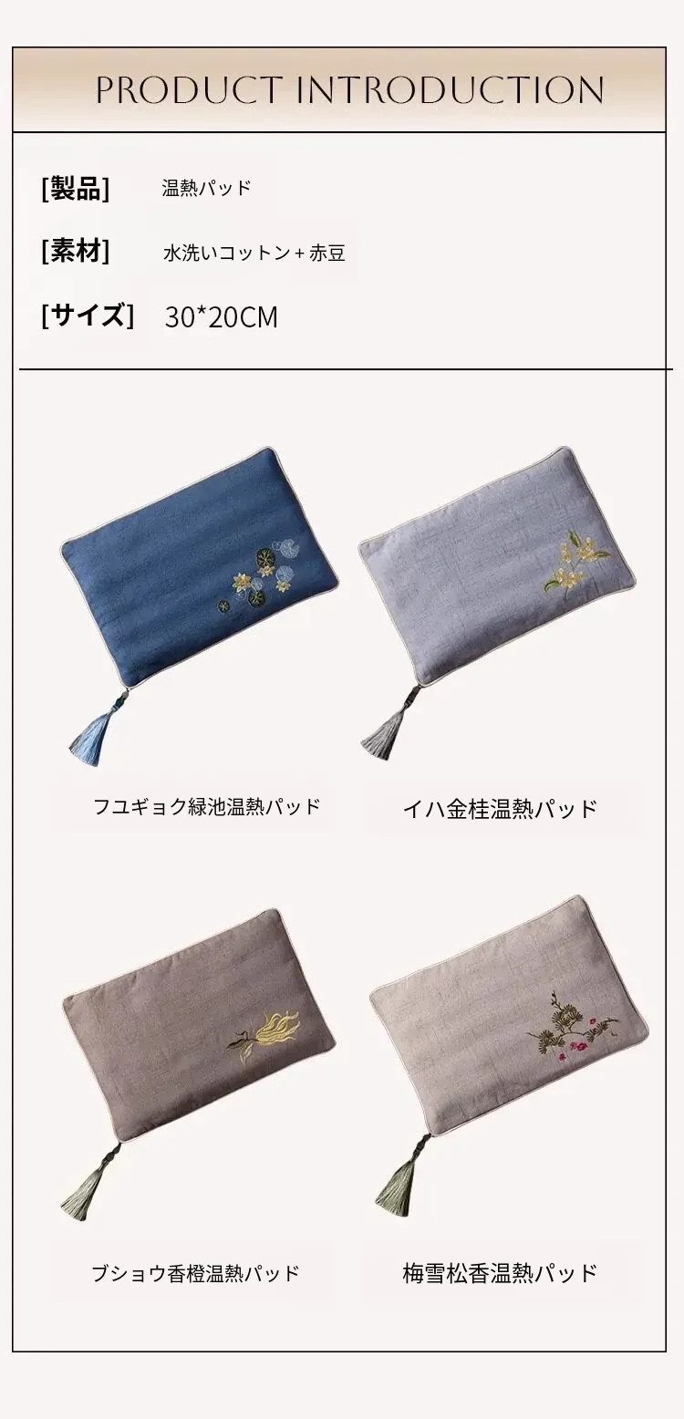 新中式刺繍デザインの温熱療法バッグ - レッドビーンバッグ、家庭用お灸で腰や腹部、肩や首をしっかり温める!リラックス効果抜群の温熱パックで心も体も癒される!