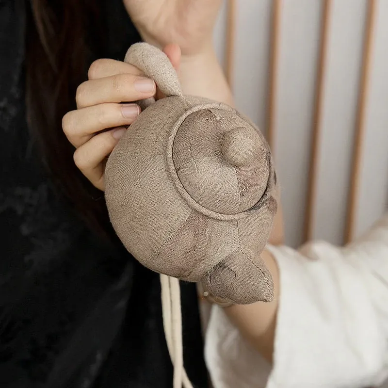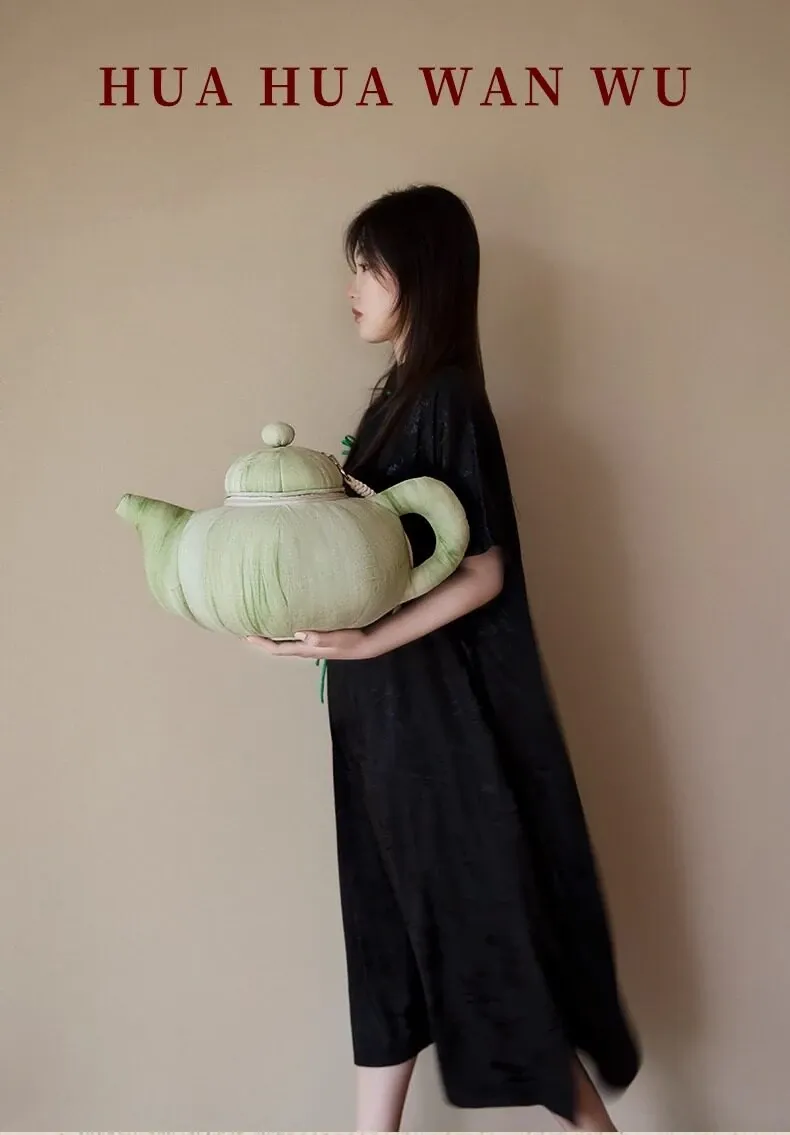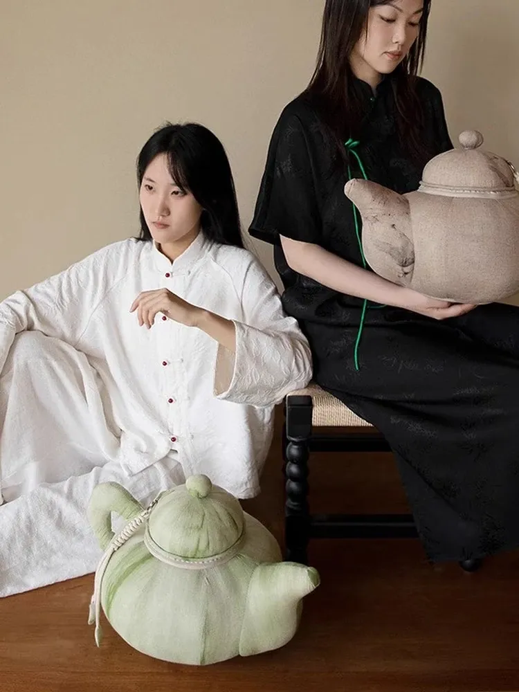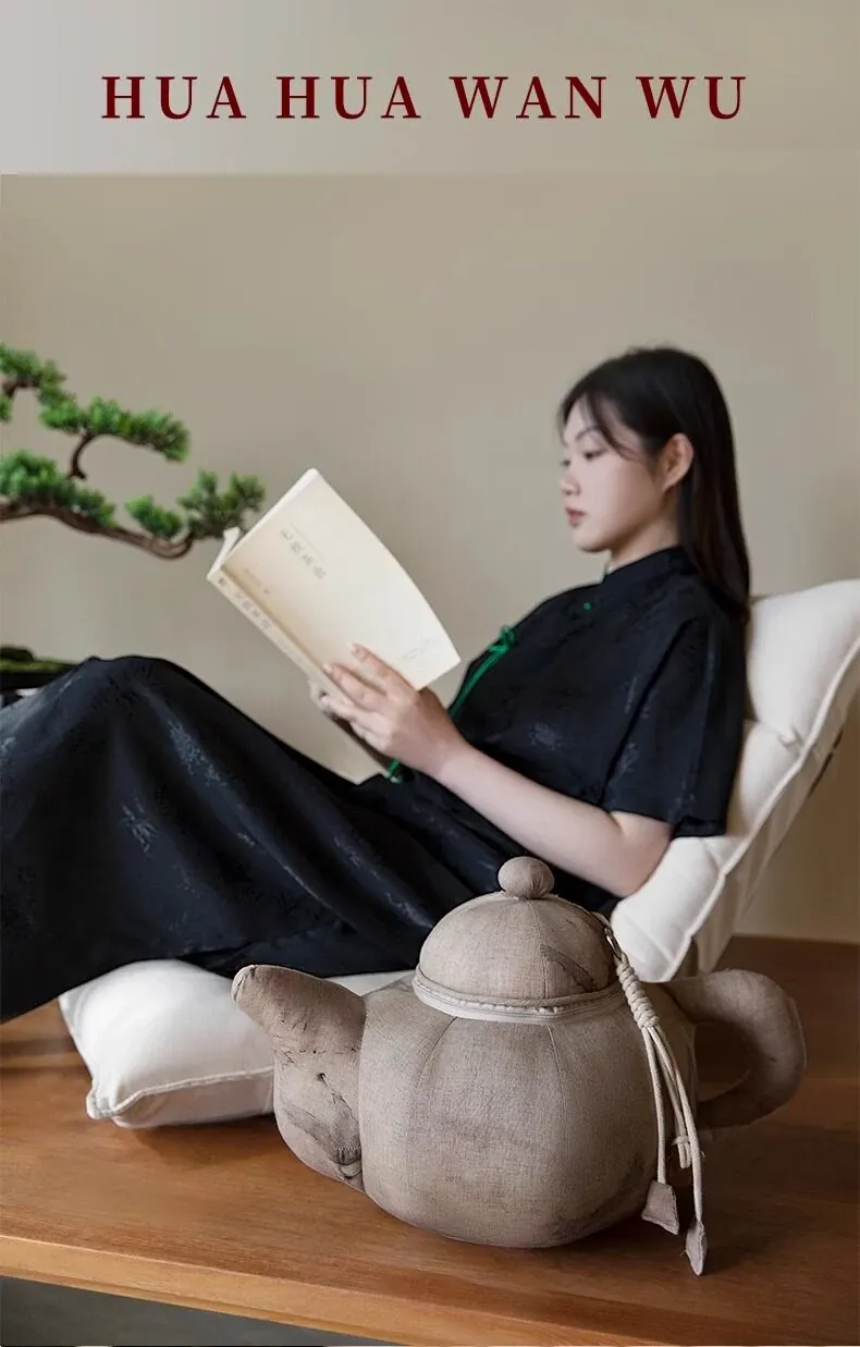 新中式デザインの小さな茶壺クッション|リビングソファ用装飾クッション|宋風の東洋美学を感じるユニークな形状|1つの茶壺を模した魅力的なインテリアアイテム