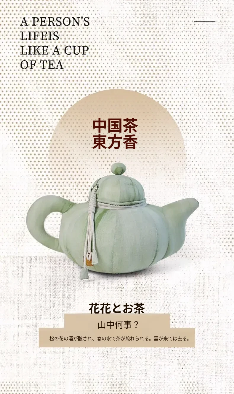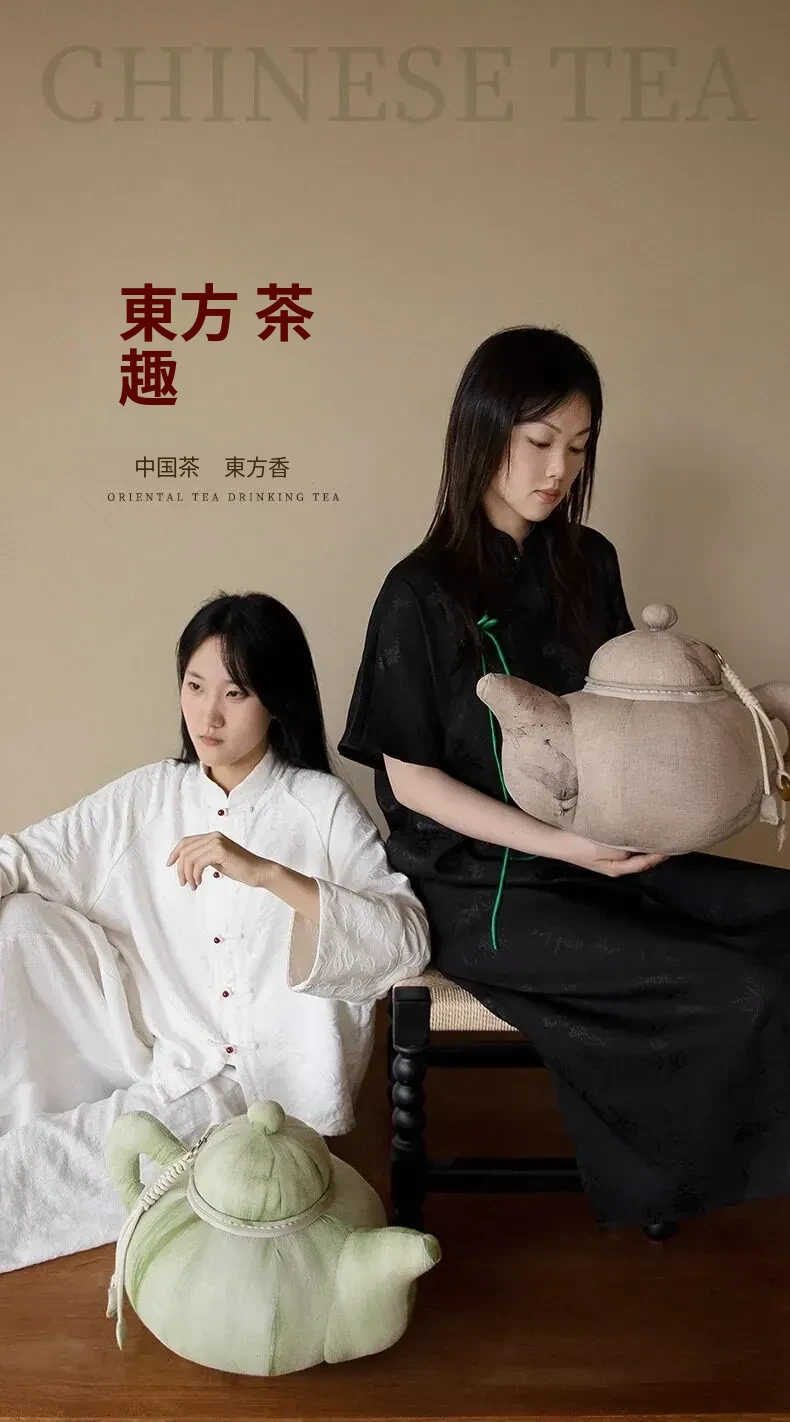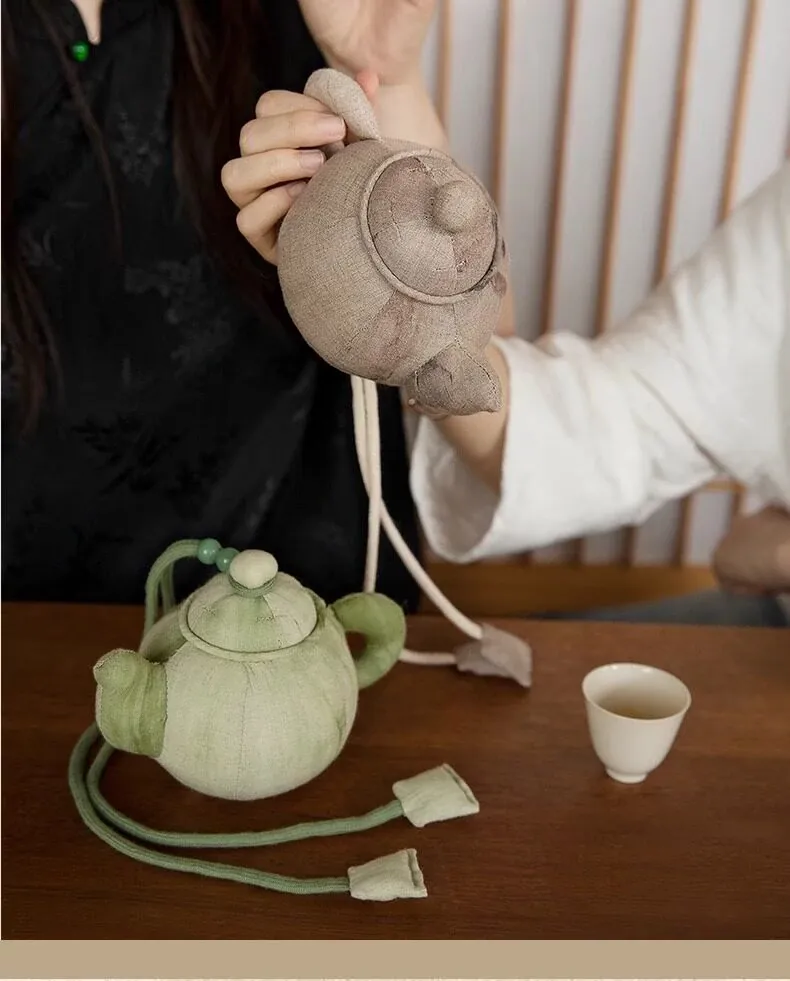 新中式デザインの小さな茶壺クッション|リビングソファ用装飾クッション|宋風の東洋美学を感じるユニークな形状|1つの茶壺を模した魅力的なインテリアアイテム