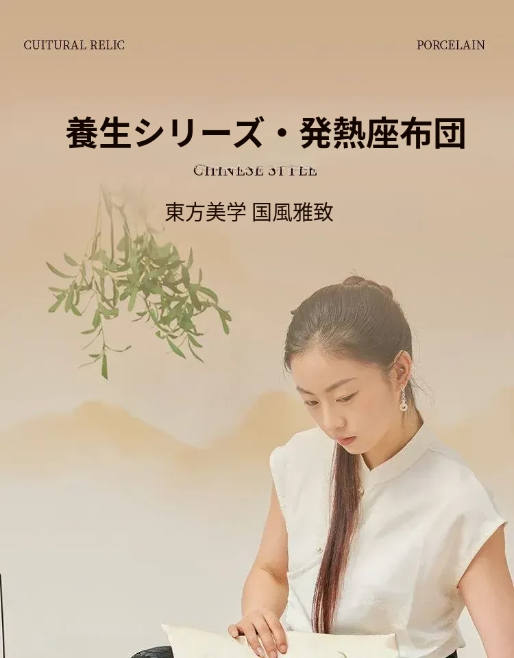 新中式健康加热座布団 - オフィスや家庭で快適な温もりを提供!小型電気ヒーター付き、艾灸効果でリラックス&美容効果も期待!