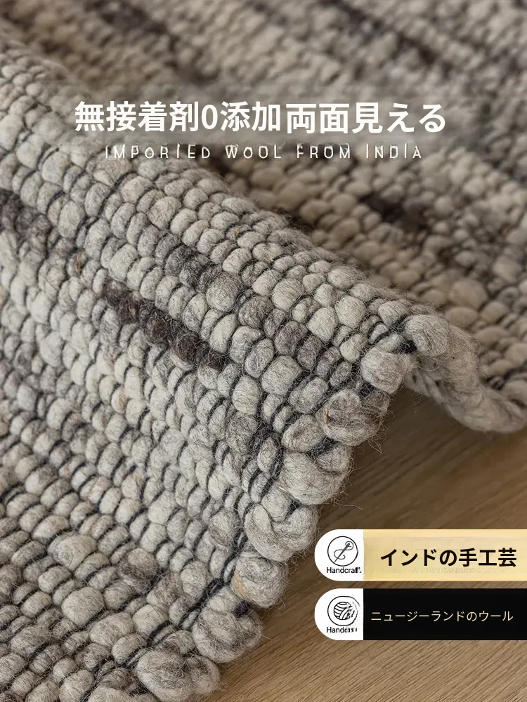 【ノンアドヒーシブラグ】ニュージーランド直輸入の純ウールラグ、ソファマット、リビングルーム用、インド手織りのコーヒーテーブルマット。高品質で快適な肌触りを実現!