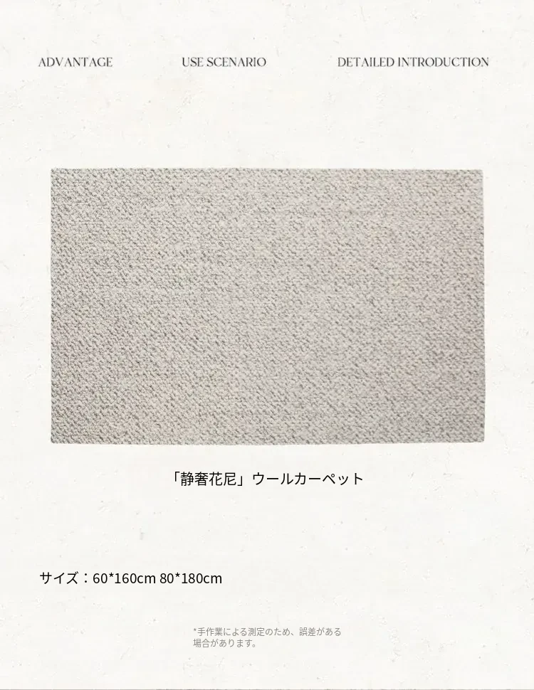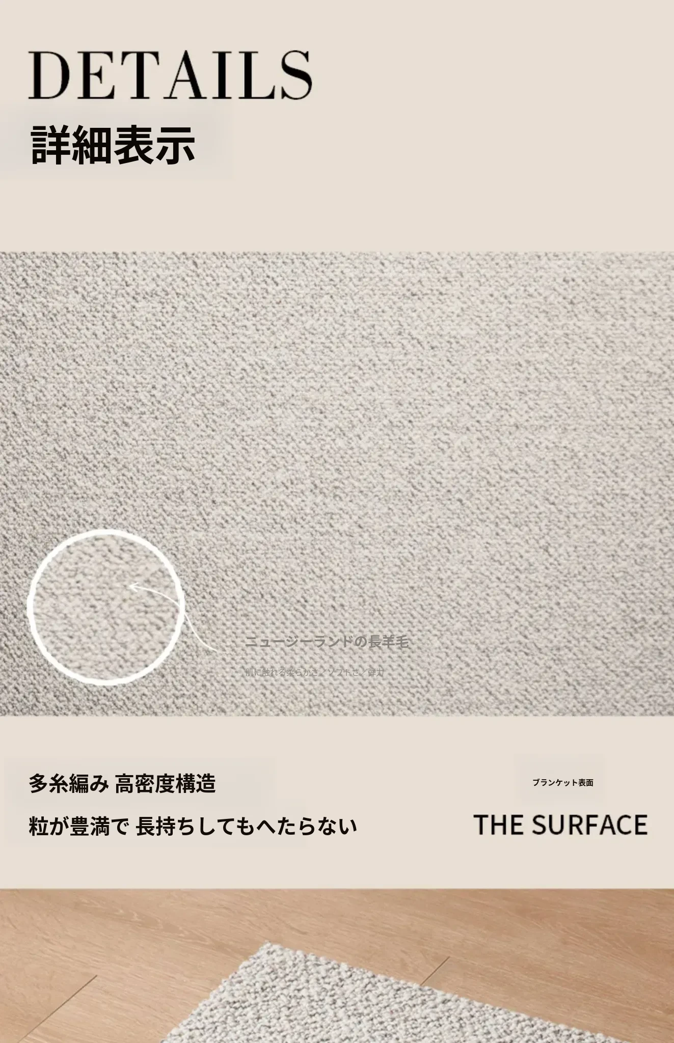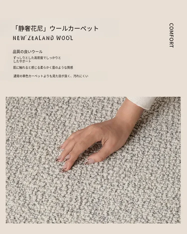ニュージーランド産ウールのベッドサイドマット—シンプルなデザインで、寝室や書斎にもぴったり!高級感あふれる長方形ラグで、リビングをスタイリッシュに演出します。快適さとエレガンスを兼ね備えた一品です。
