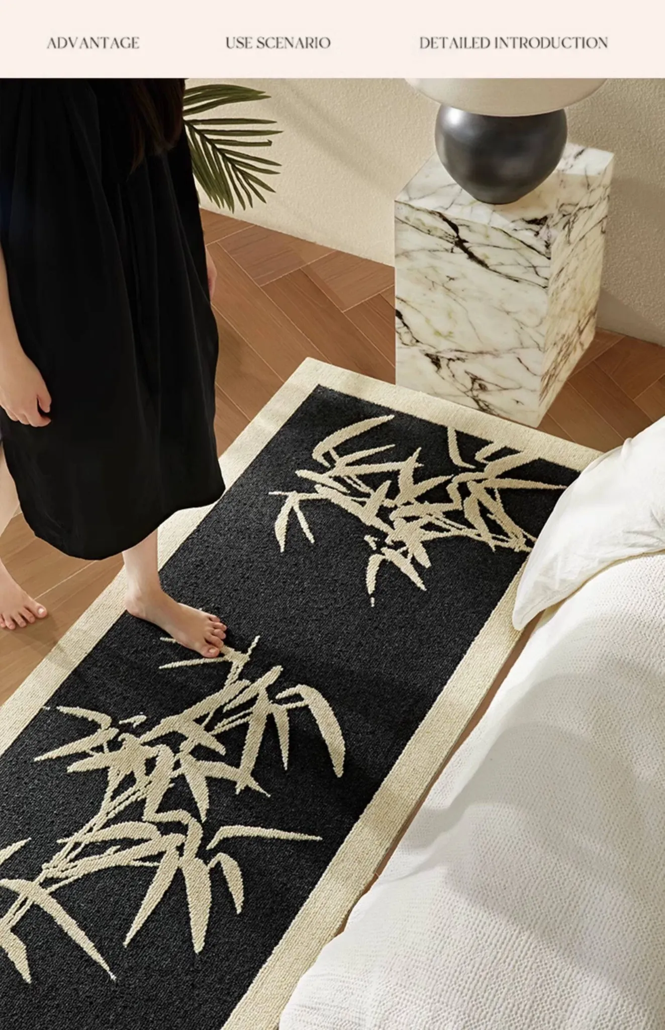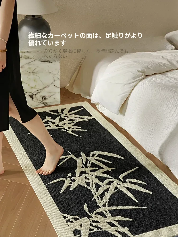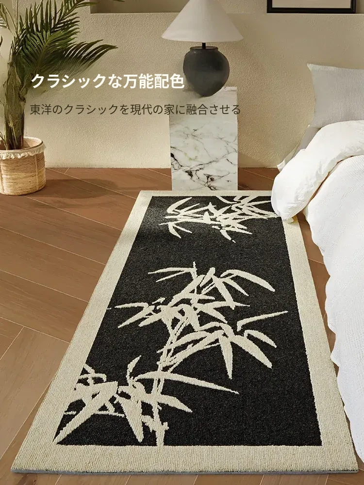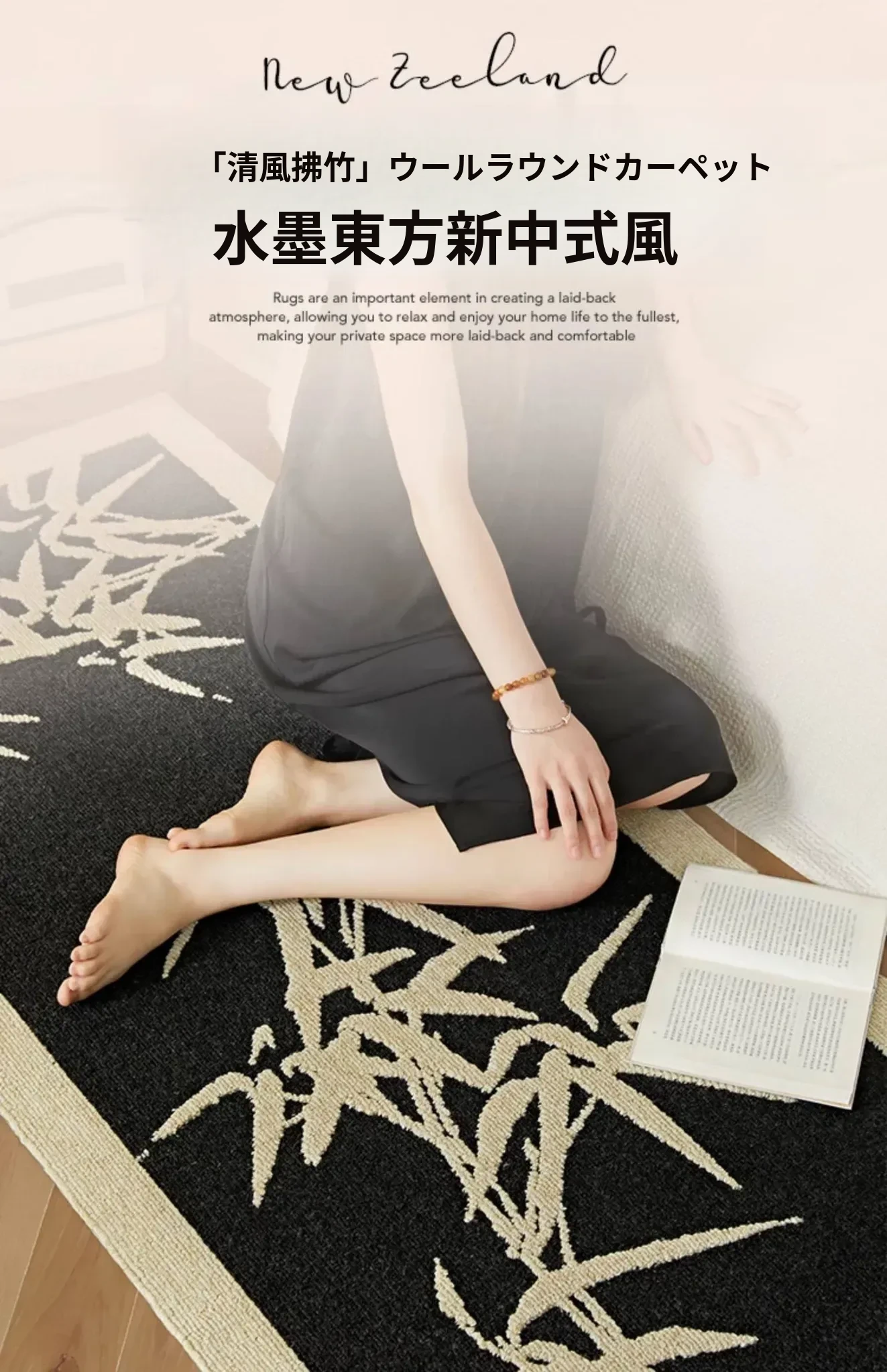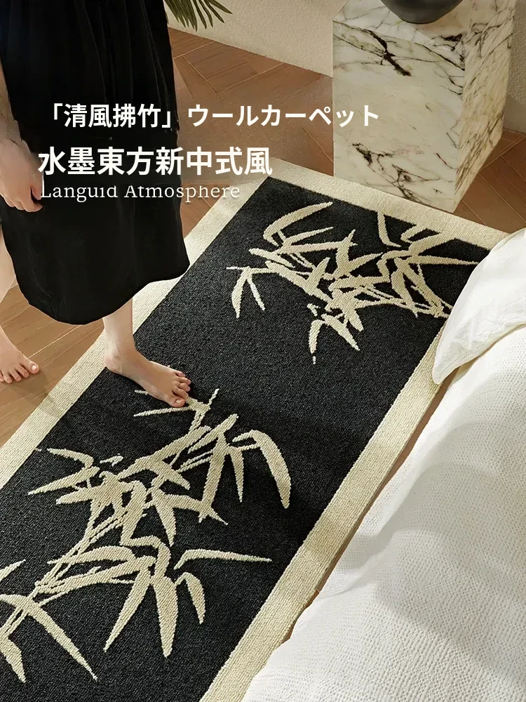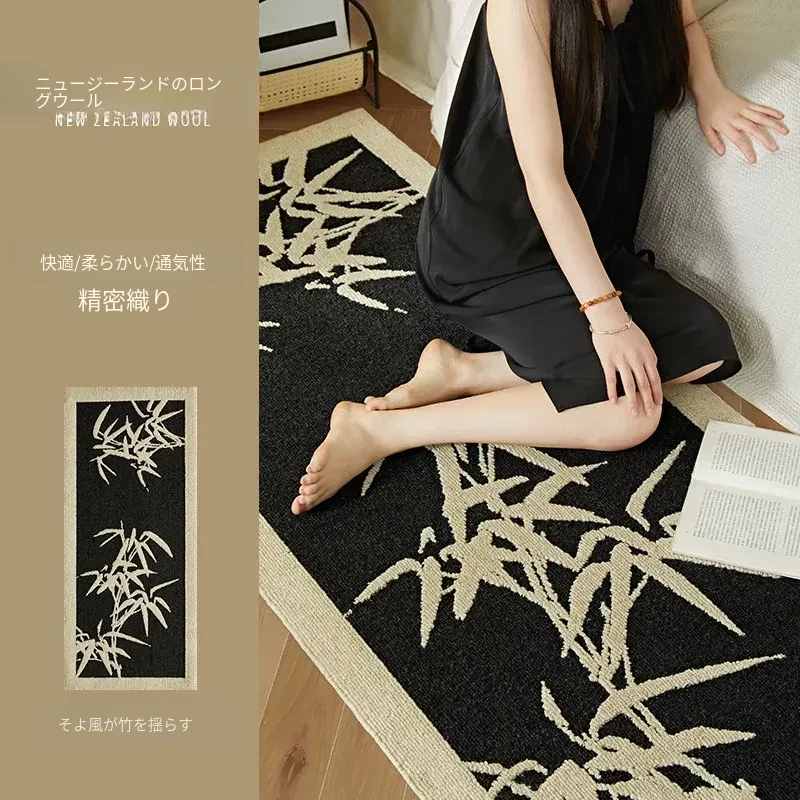 ニュージーランド産ウールカーペット 中華風デザインのロングベッドサイドマット リビングルームや主寝室に最適 汚れに強い高品質マット