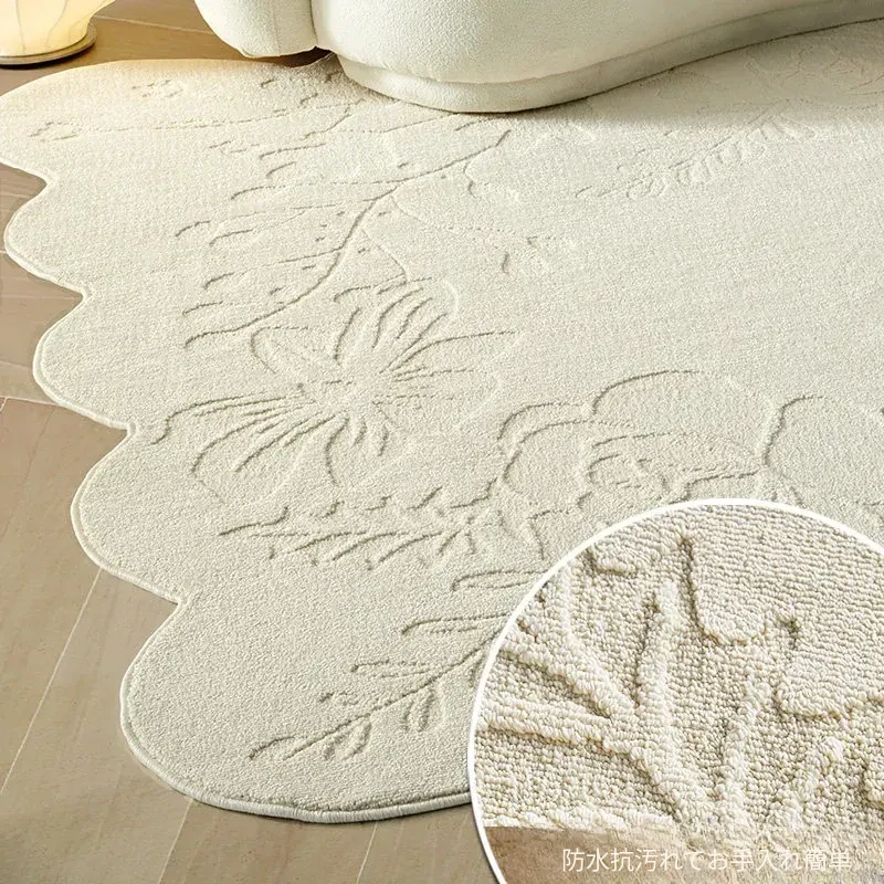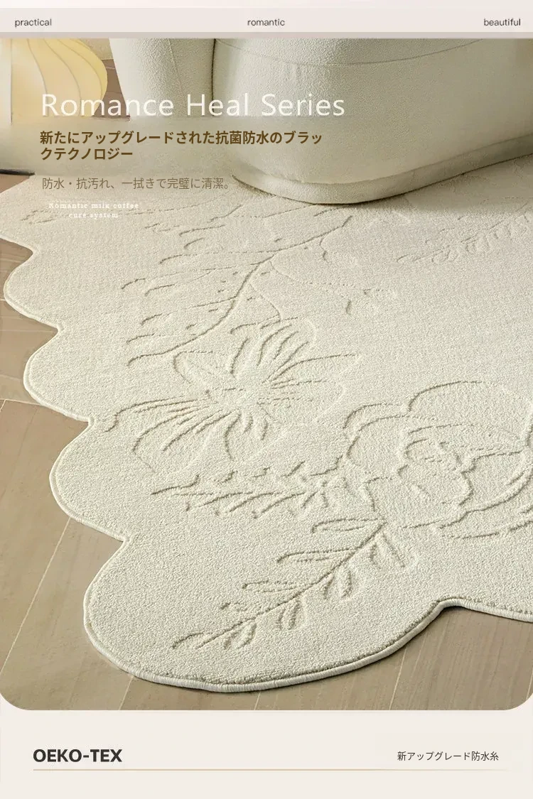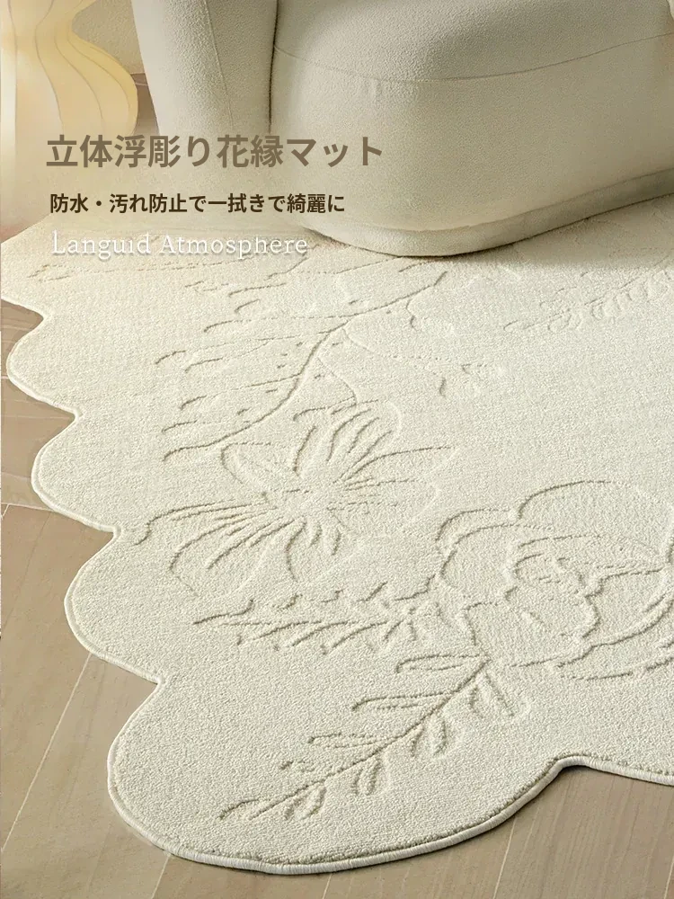 お手入れ不要!防水・抗菌・防汚のフレンチアンティークスタイル異形ラグマット - 寝室やリビングに最適、耐久性抜群でおしゃれなソファマット