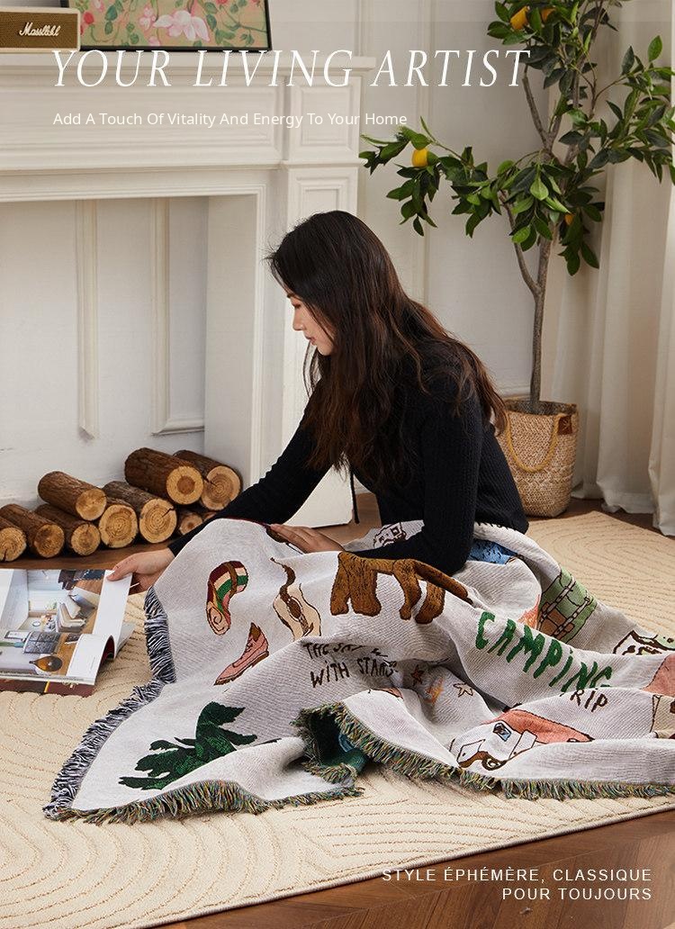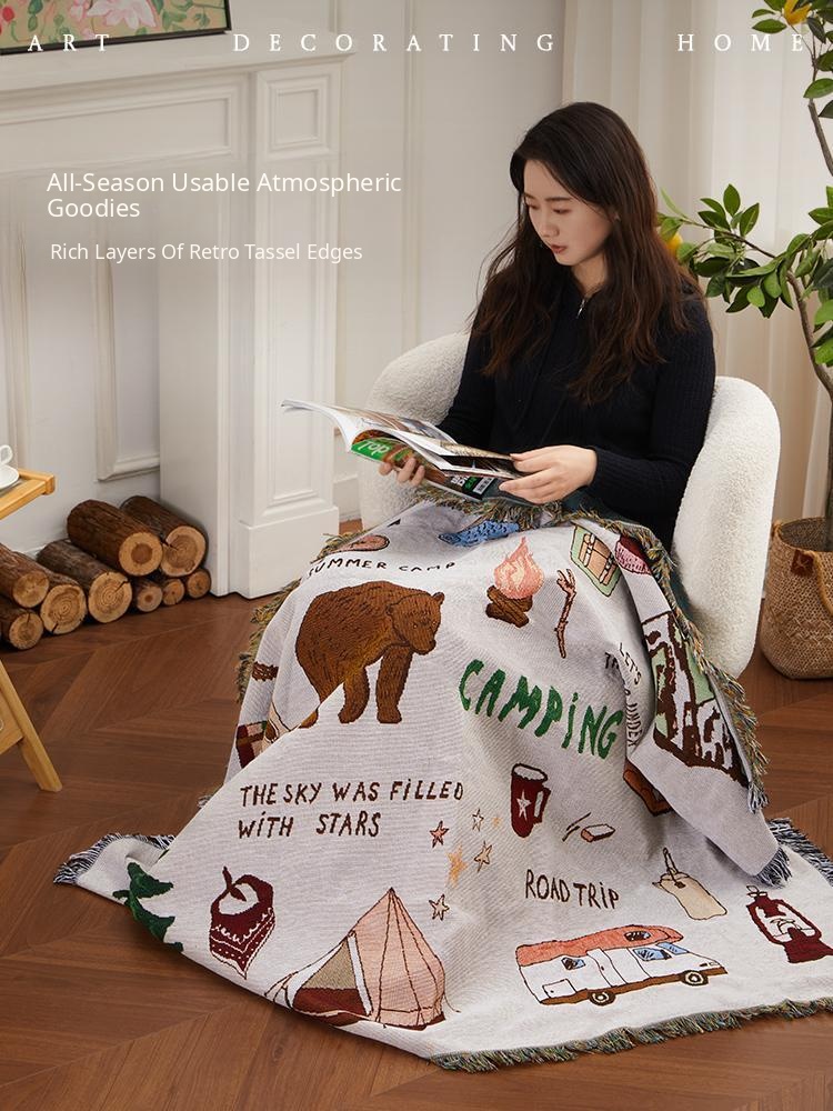 Stylish and Cozy Woven Throw Blanket for Home - Versatile Knitted Sofa Cover for Living Room and Bedroom, Retro Chic Design for Ultimate Comfort and Decor
