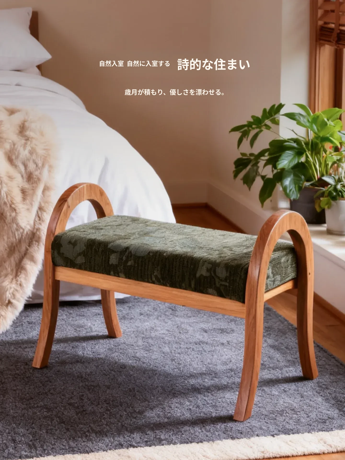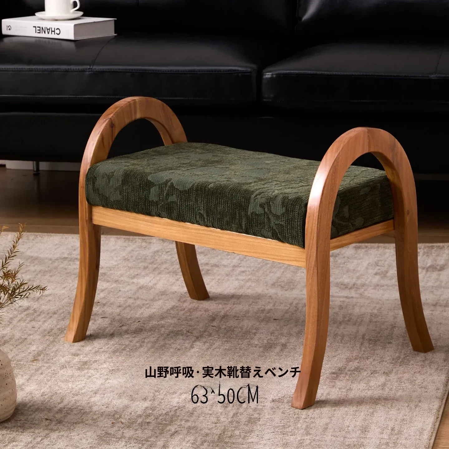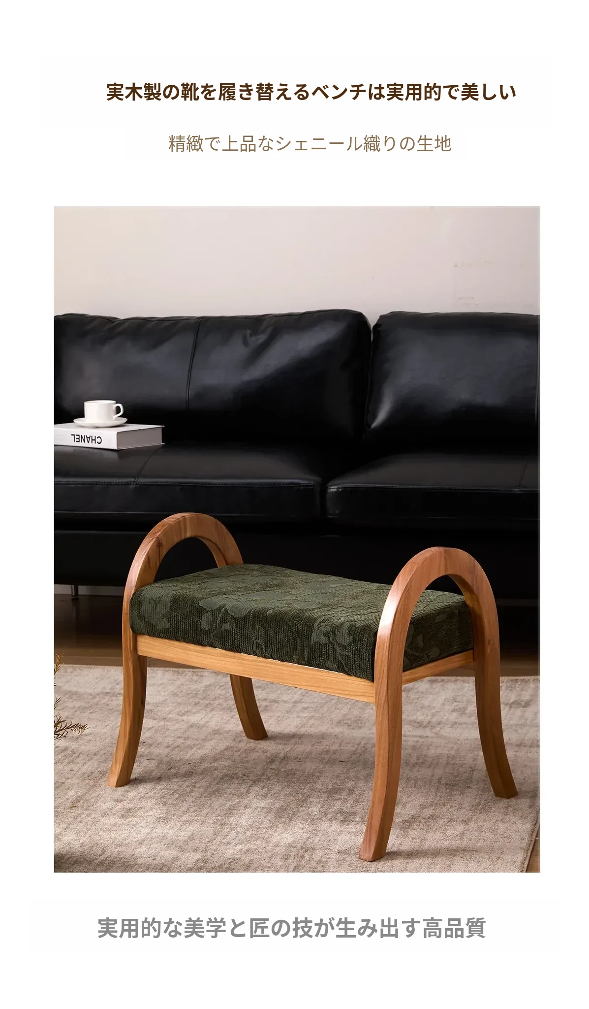 玄関用のオシャレな靴置きベンチ - おしゃれなリビングにぴったりな高級感あふれる無垢材のスツール。靴を履くのも楽々、インテリアとしても映える一品です!
