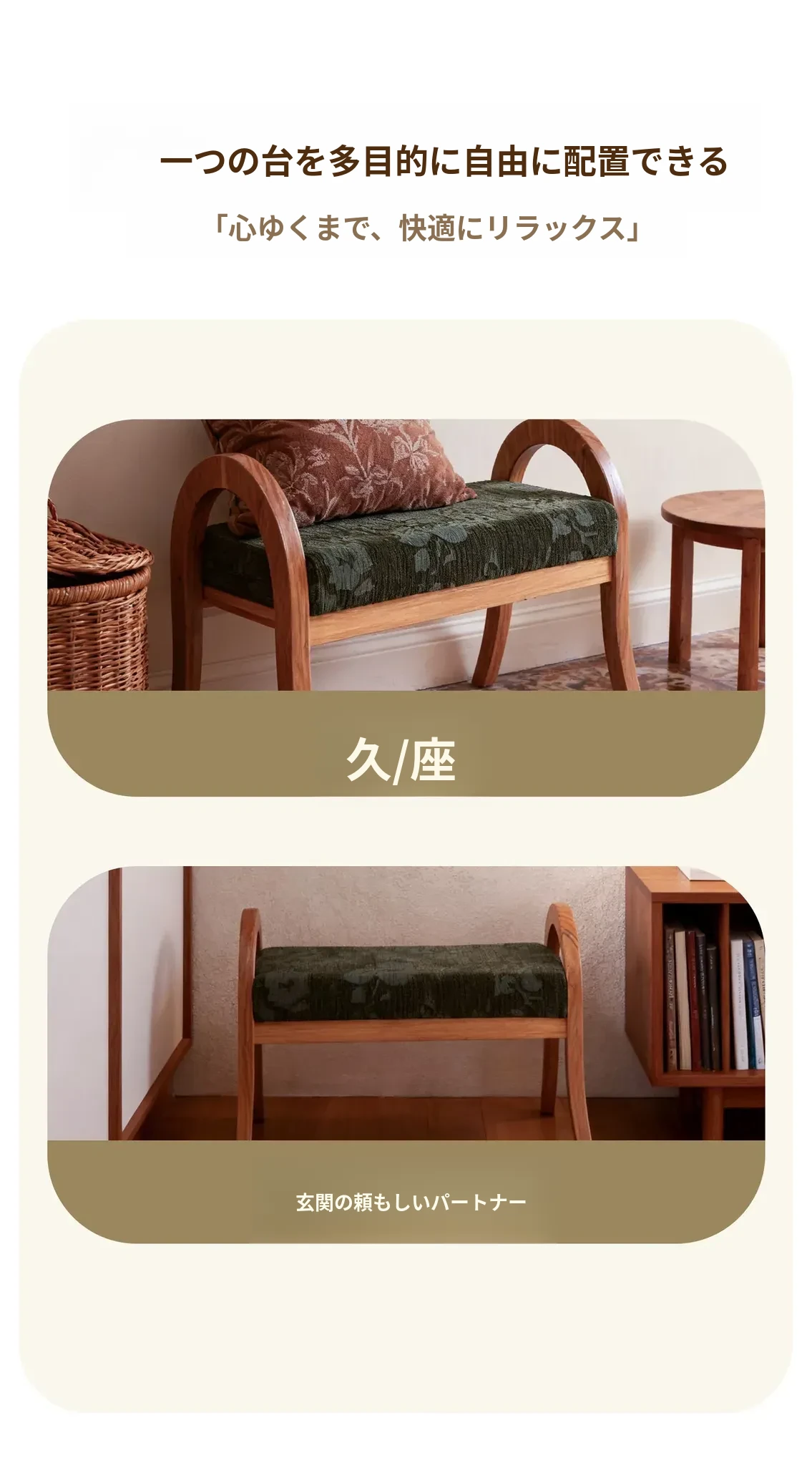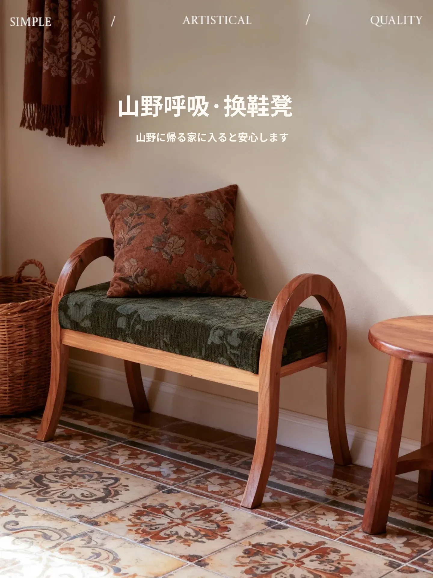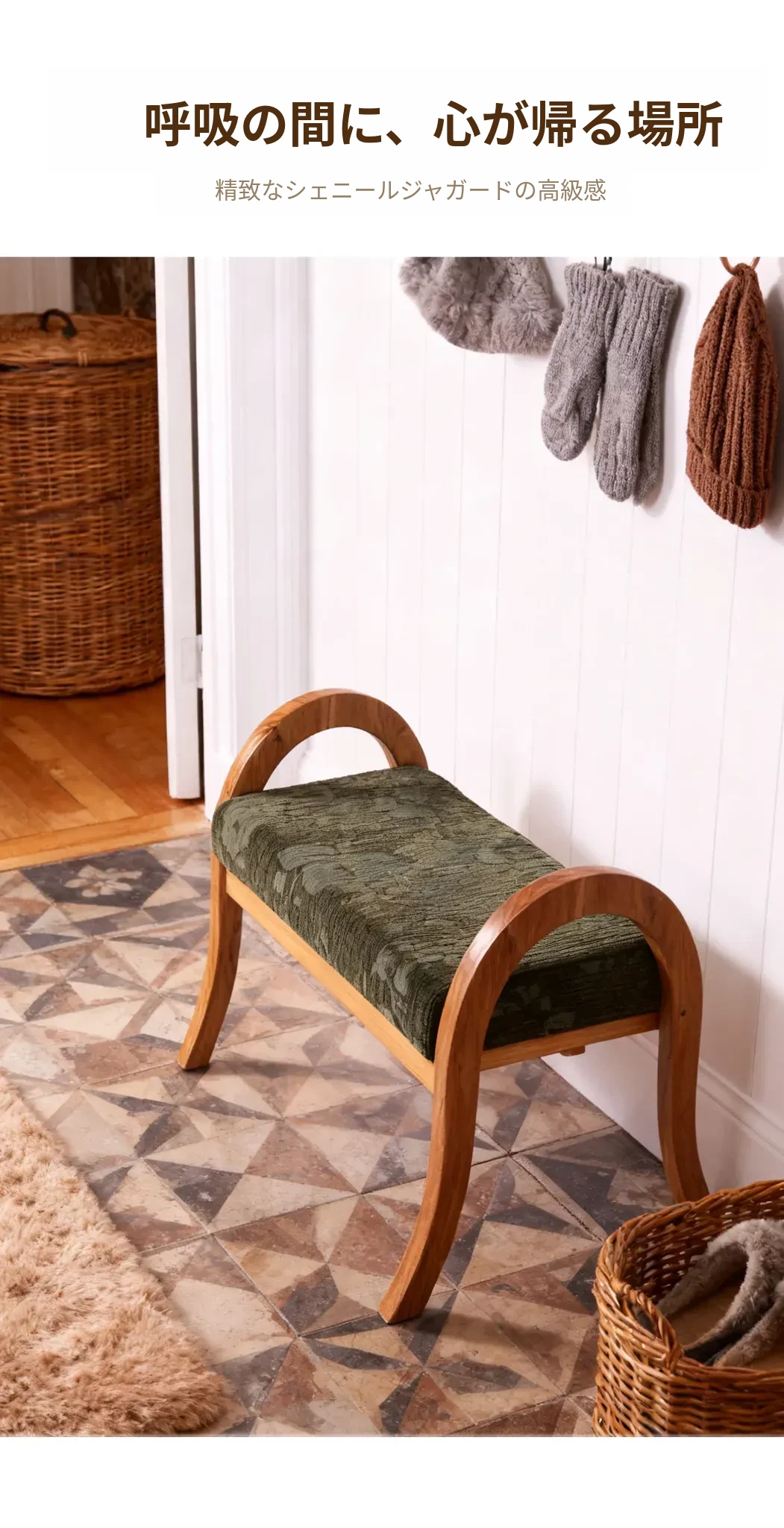 玄関用のオシャレな靴置きベンチ - おしゃれなリビングにぴったりな高級感あふれる無垢材のスツール。靴を履くのも楽々、インテリアとしても映える一品です!