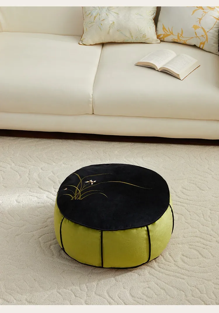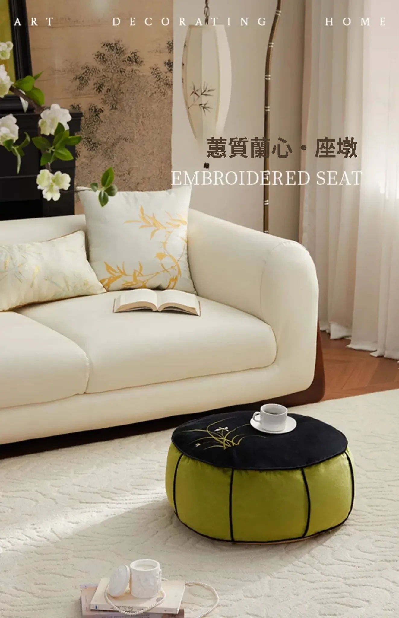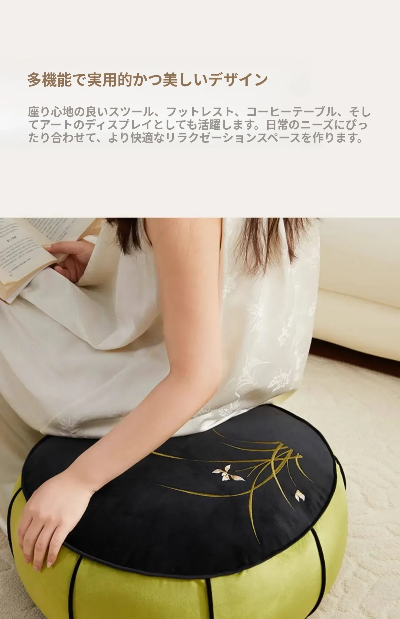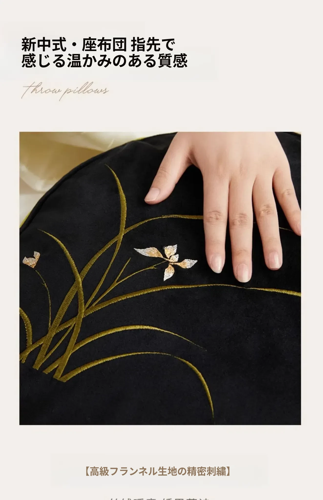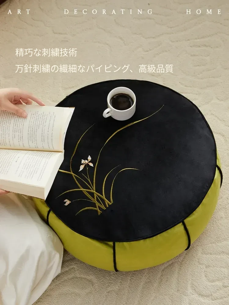 高級感溢れる新中式刺繍デザインのエレガントな蒲団地毯、リビングルームやソファに最適な軽量タタミマット。おしゃれで快適な座り心地を提供します!