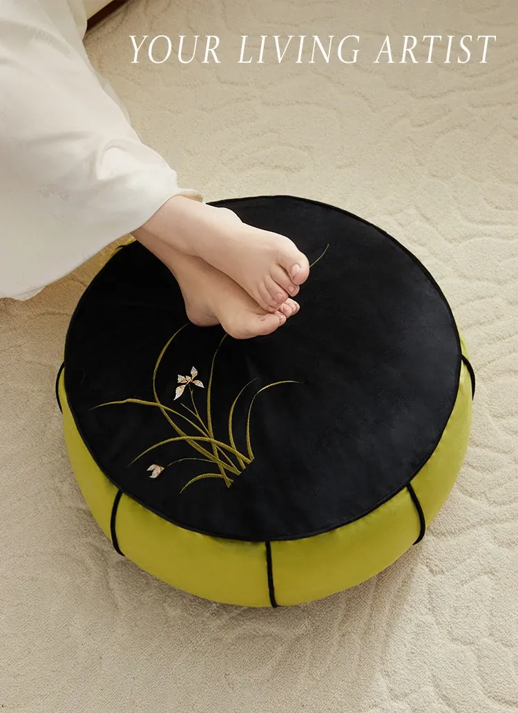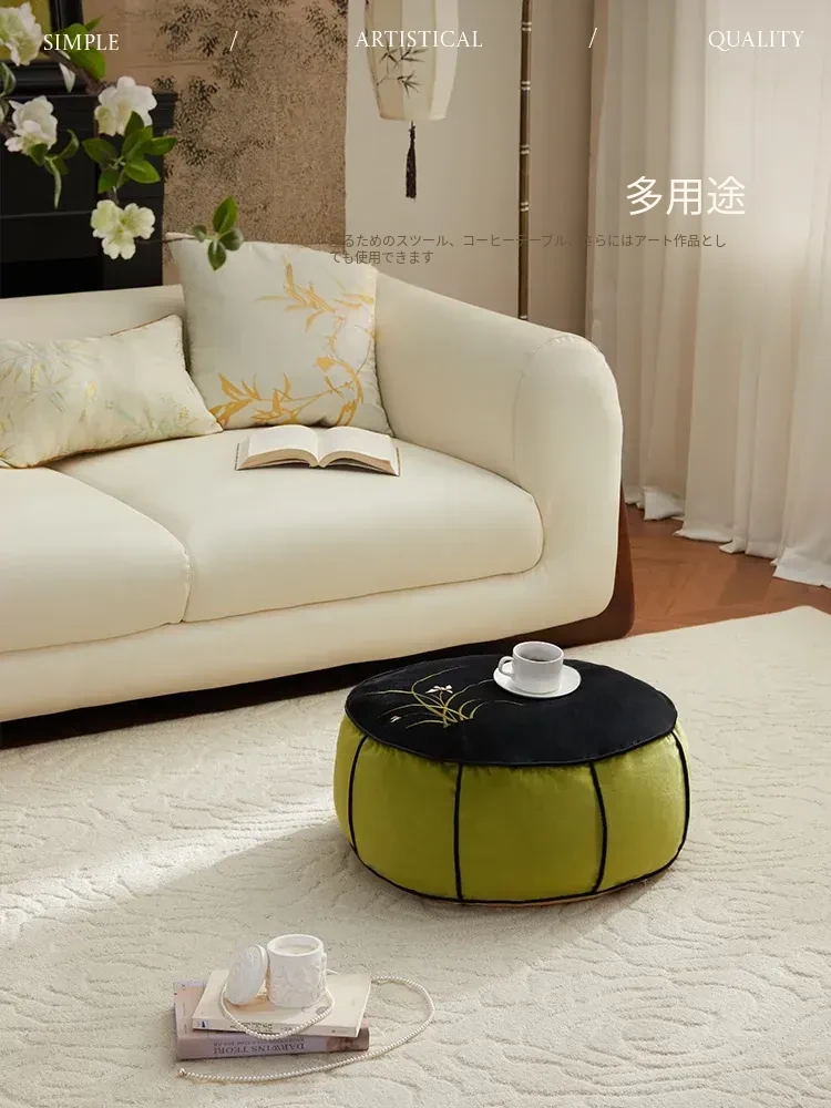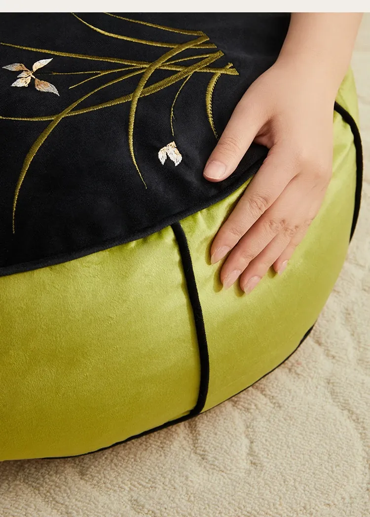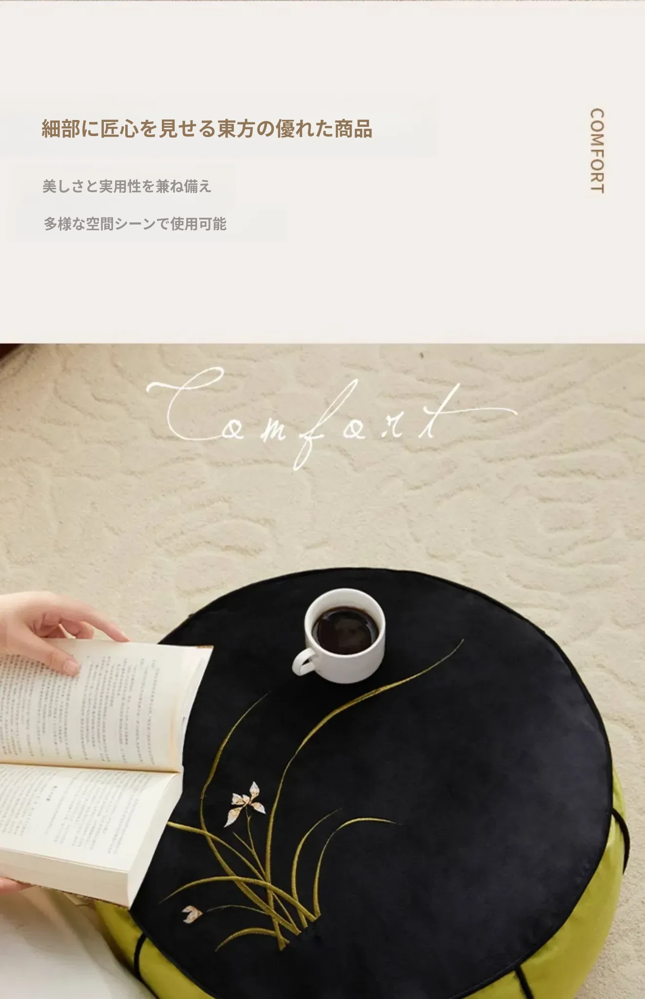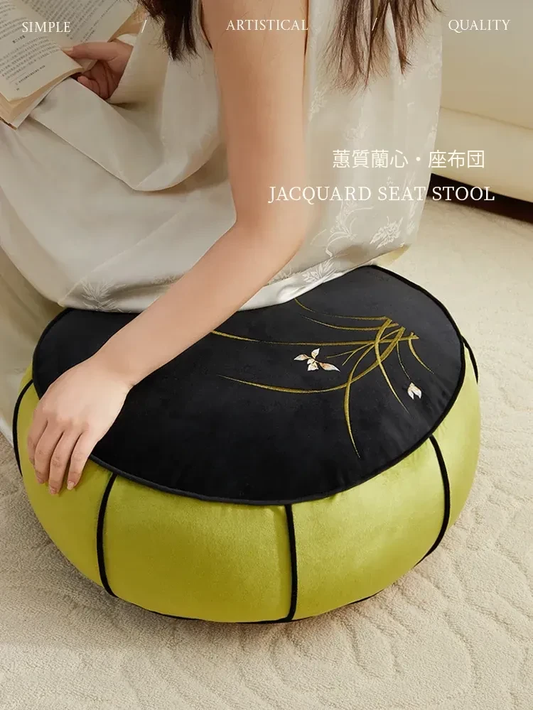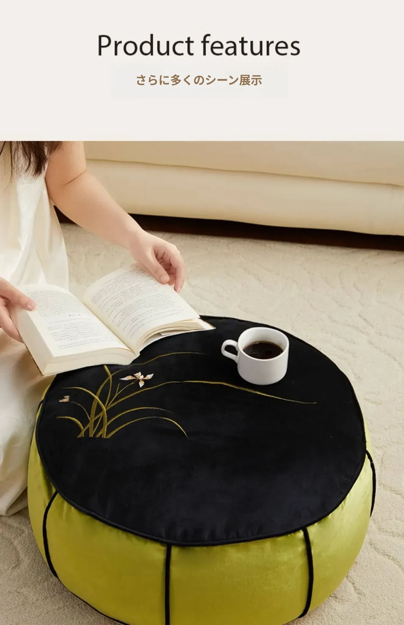 高級感溢れる新中式刺繍デザインのエレガントな蒲団地毯、リビングルームやソファに最適な軽量タタミマット。おしゃれで快適な座り心地を提供します!