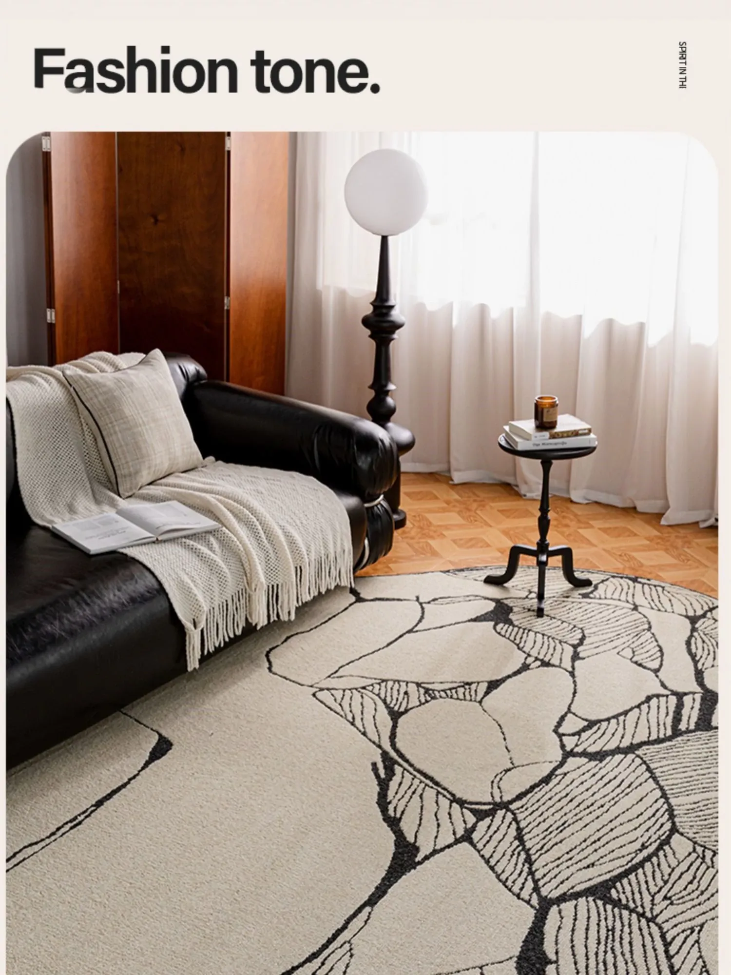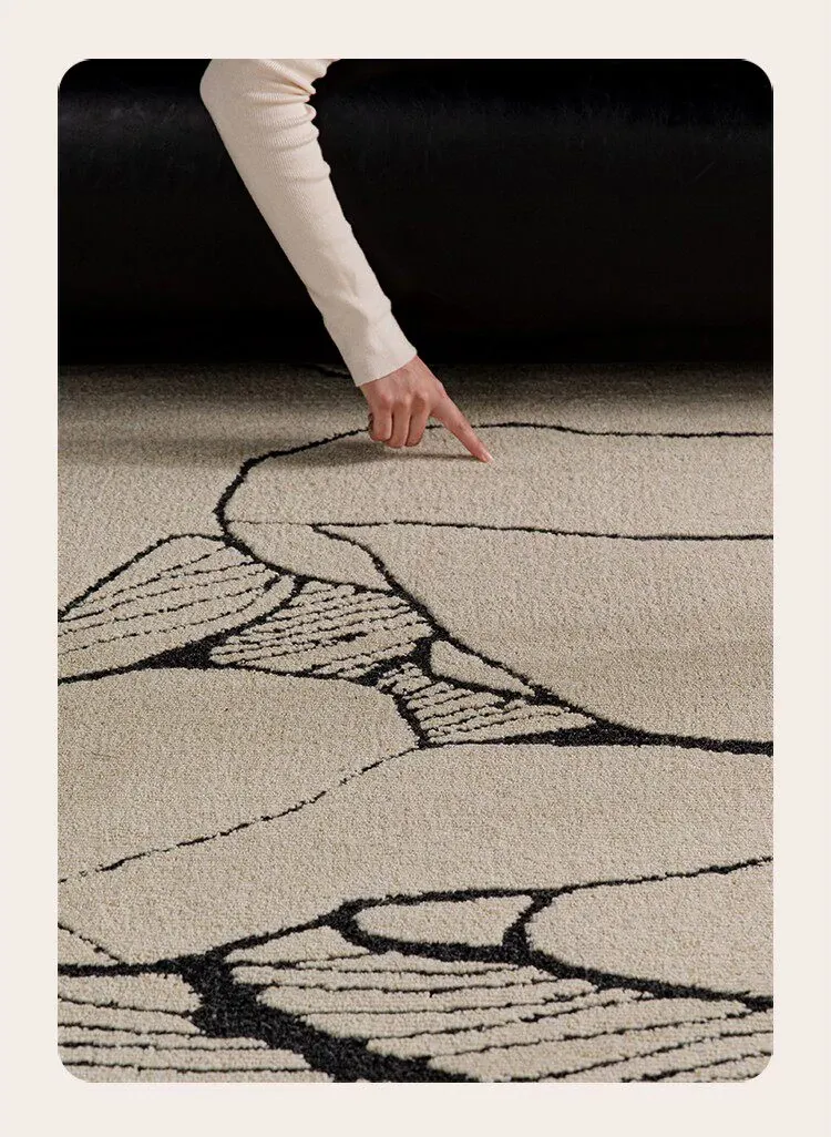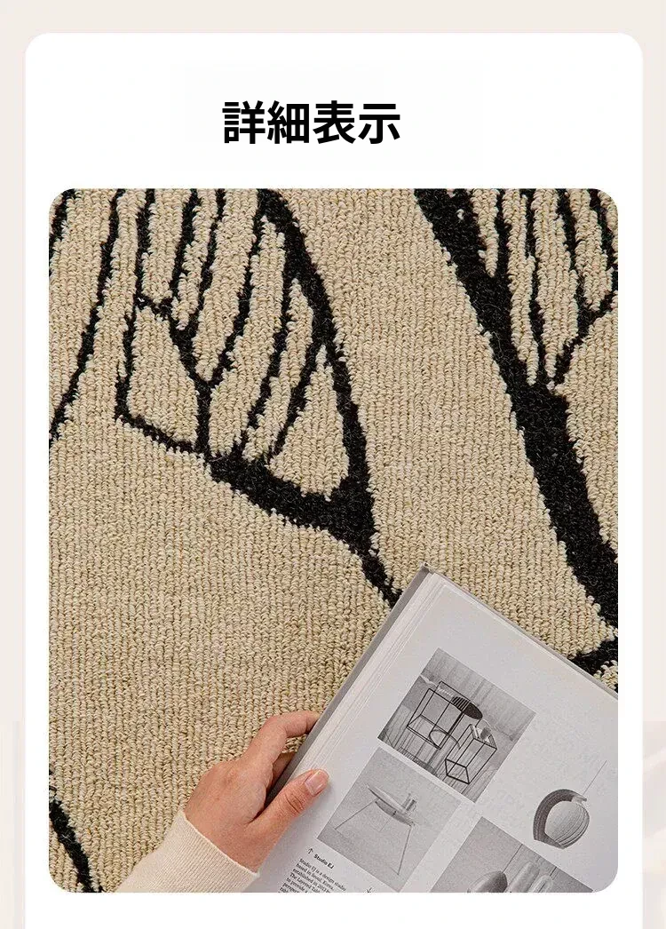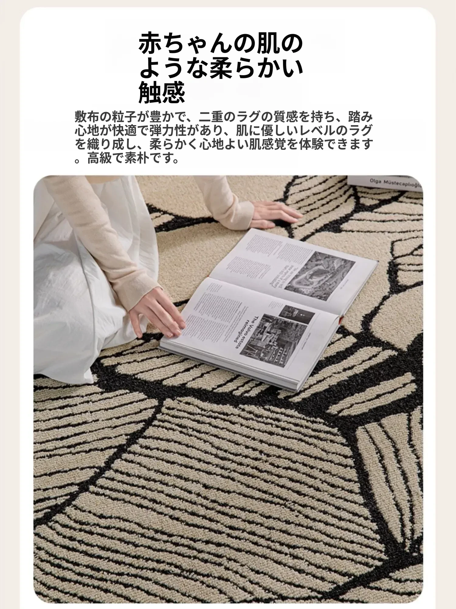 エッジの効いたデザイン!軽やかなラグマット - 羊毛製の北欧スタイル、リビングやベッドサイドにぴったりのユニークな不規則型カーペット。贅沢さと侘び寂びを融合させた、あなたの空間を特別に演出します。