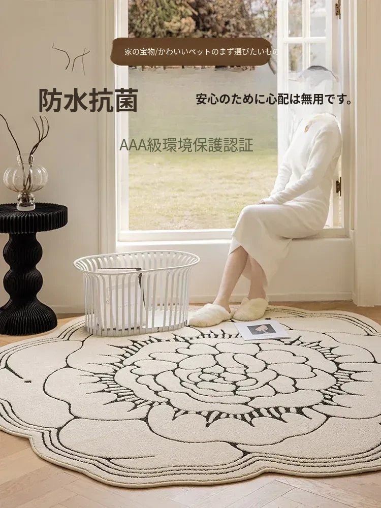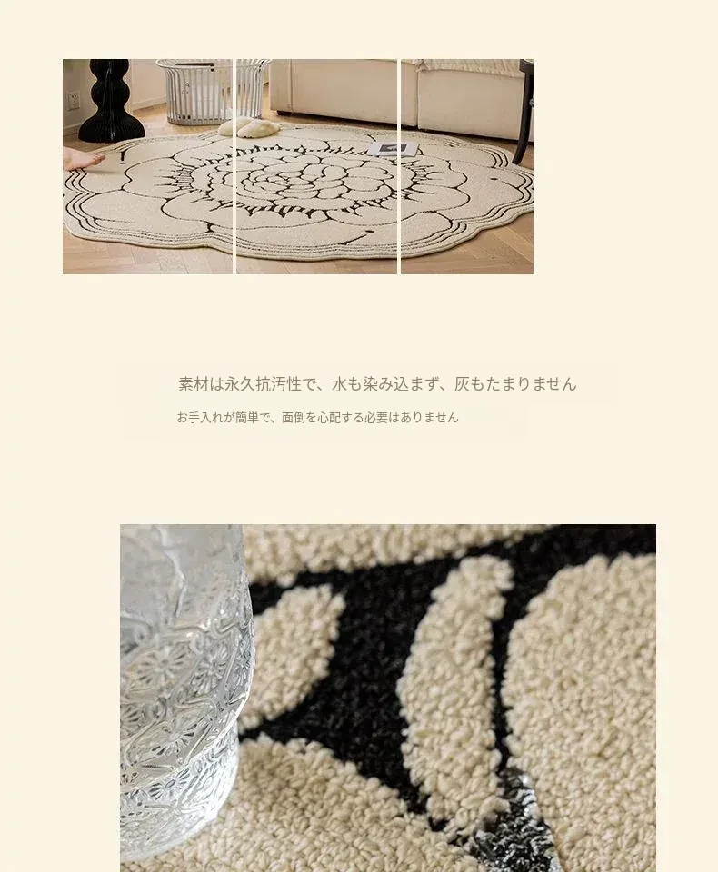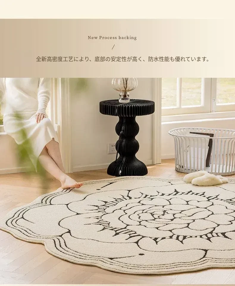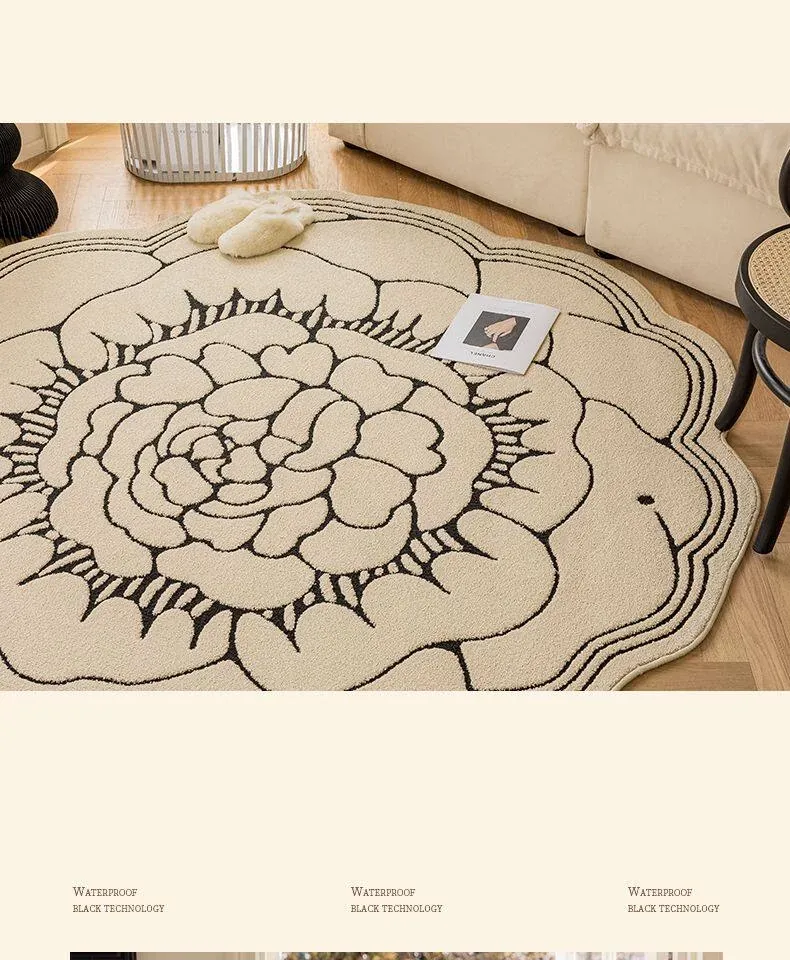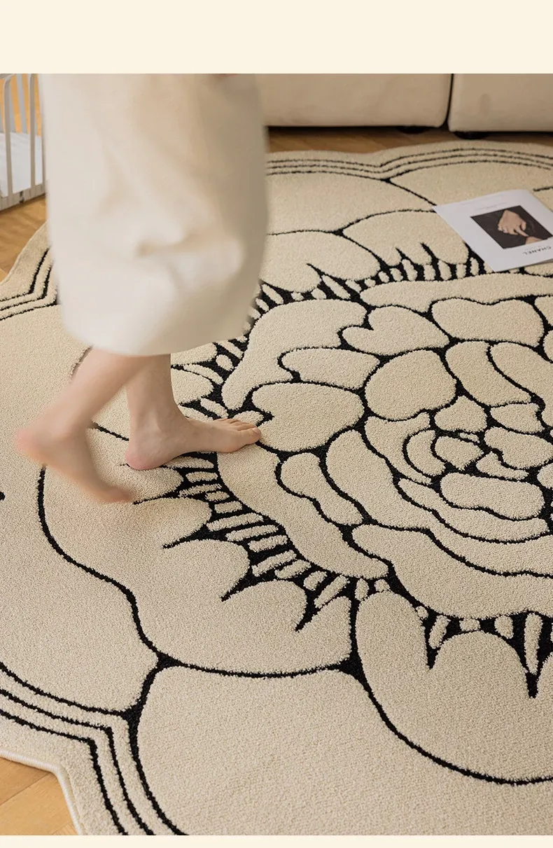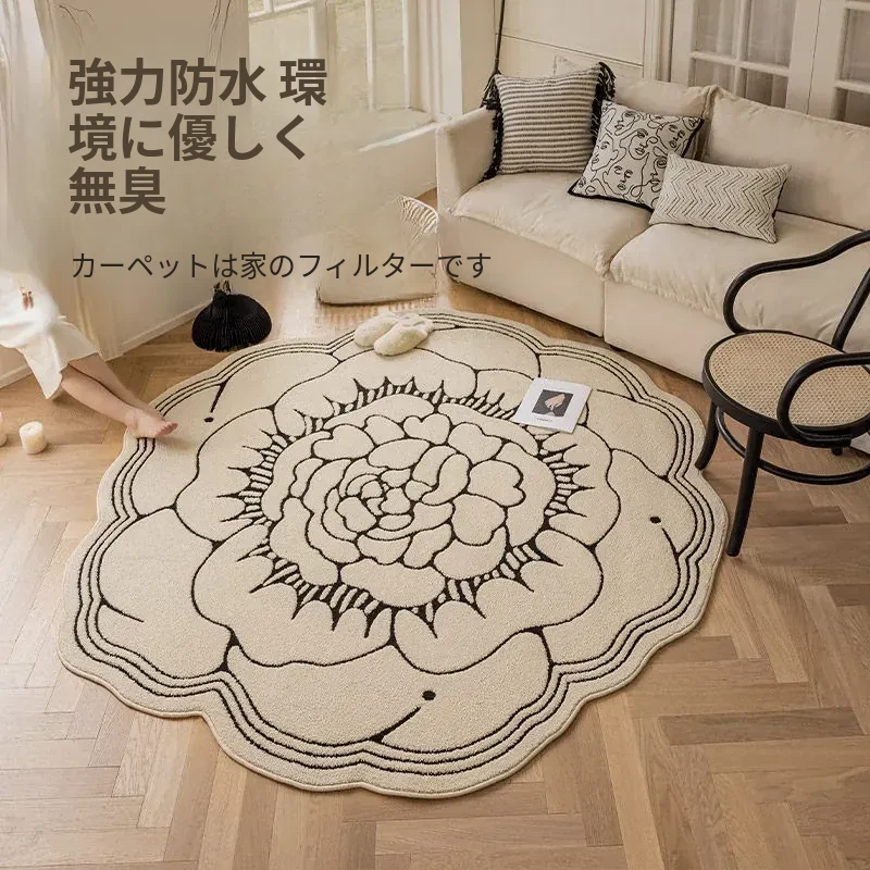 防水・汚れ防止!異形カメリアデザインのラグマット - 寝室・クローゼット・ベッドサイドにぴったり!お手入れ簡単で、リビングのソファやテーブルにも最適!