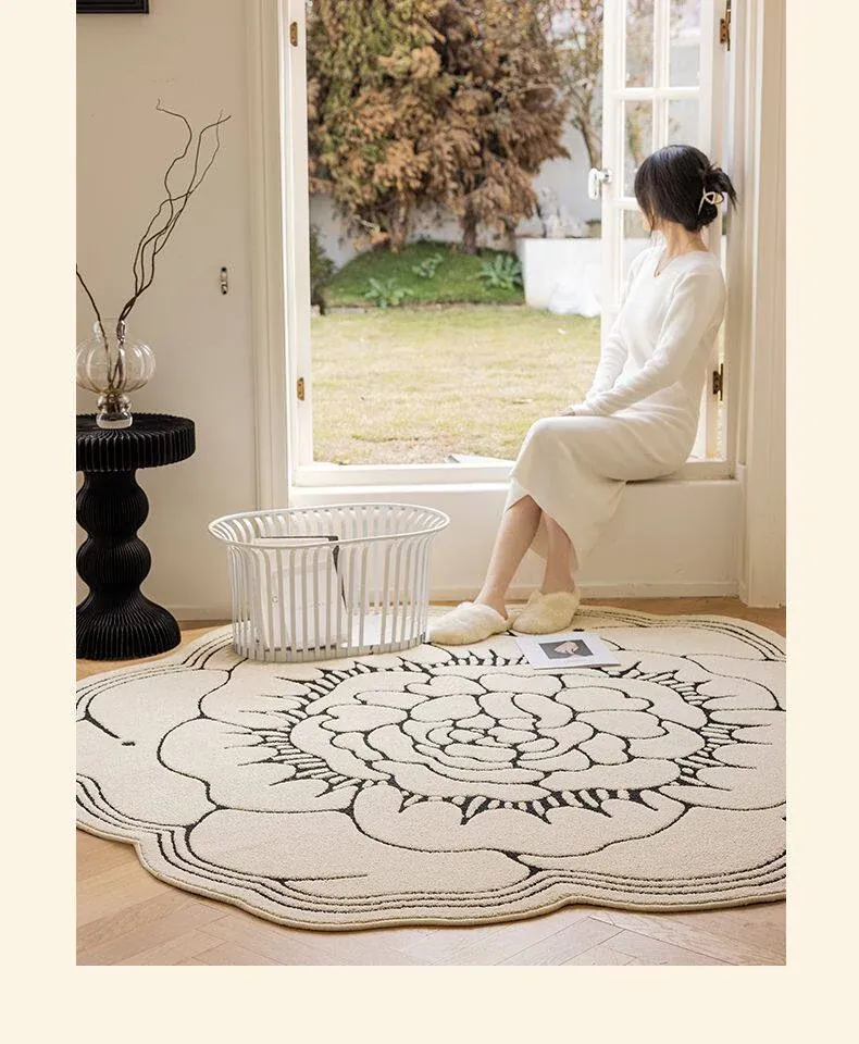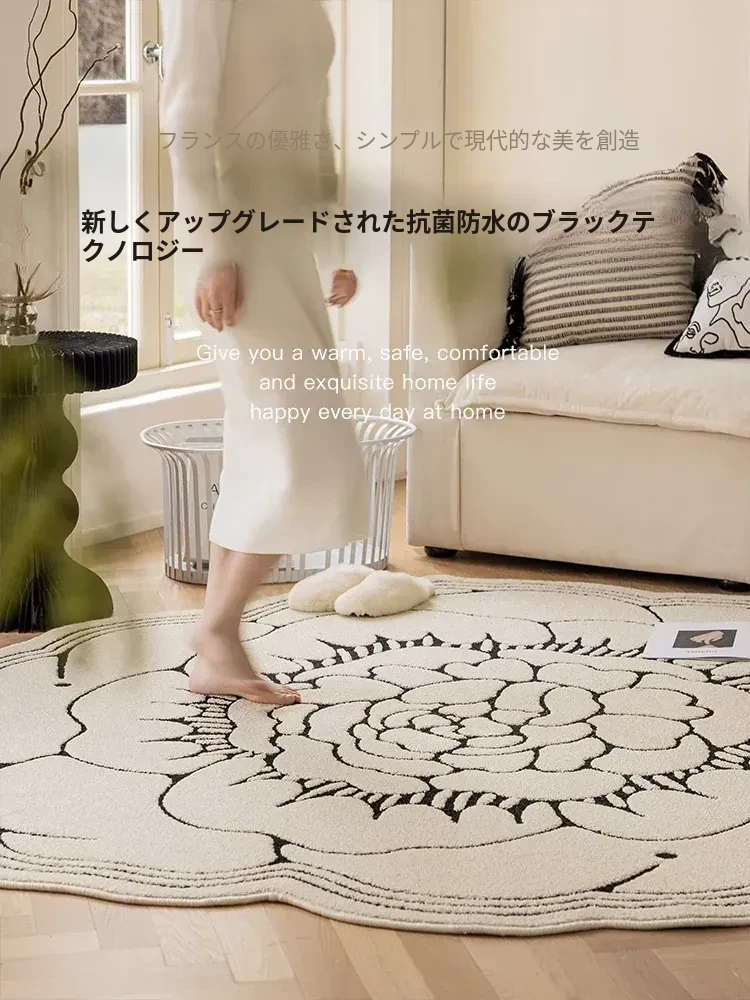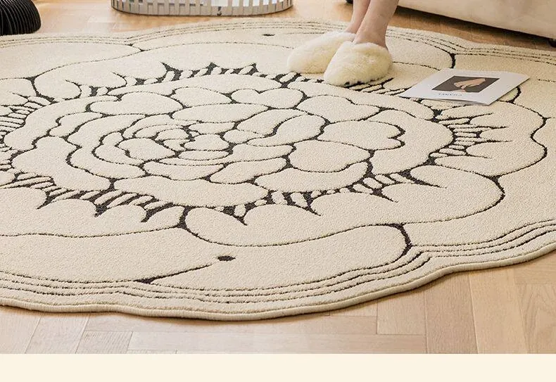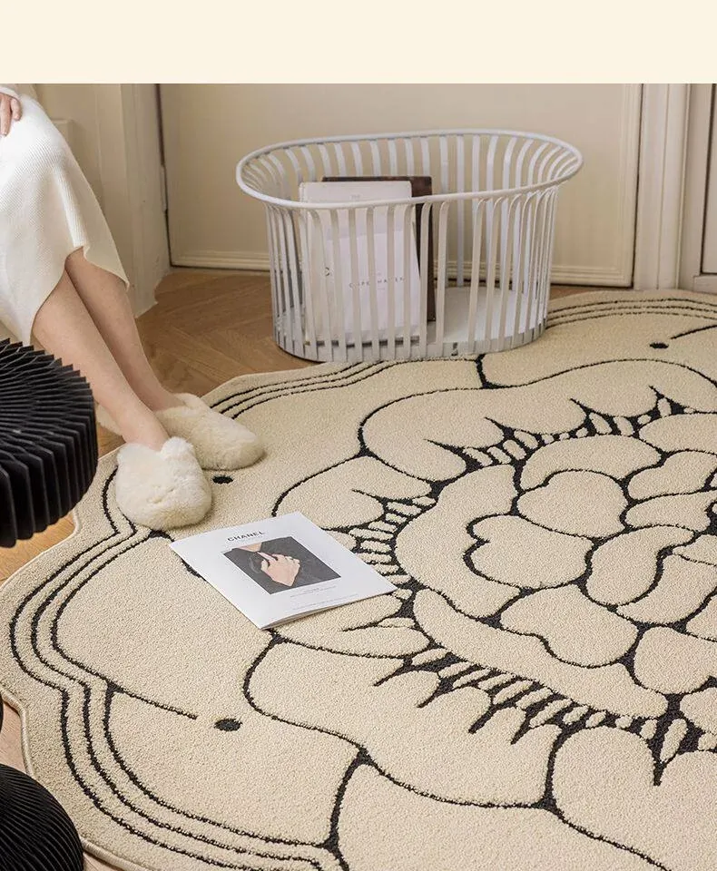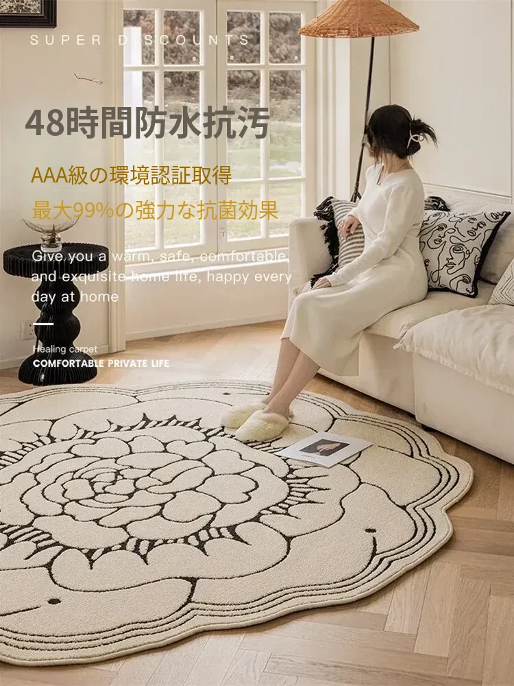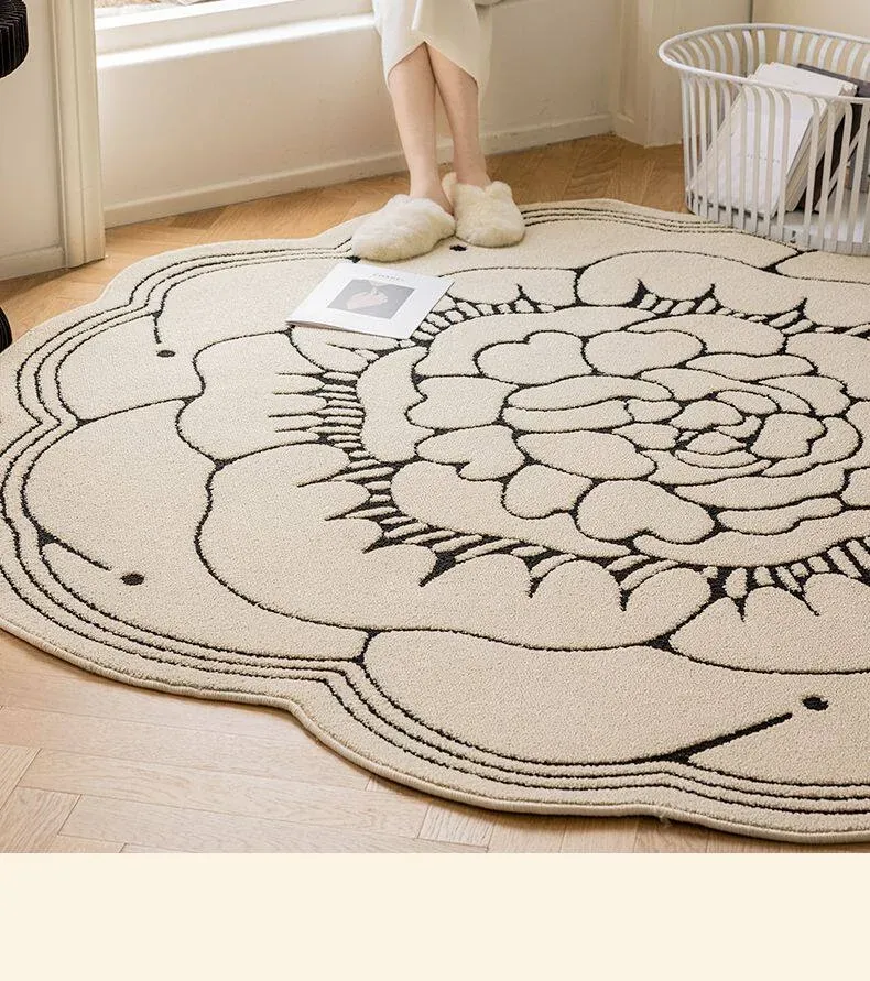 防水・汚れ防止!異形カメリアデザインのラグマット - 寝室・クローゼット・ベッドサイドにぴったり!お手入れ簡単で、リビングのソファやテーブルにも最適!