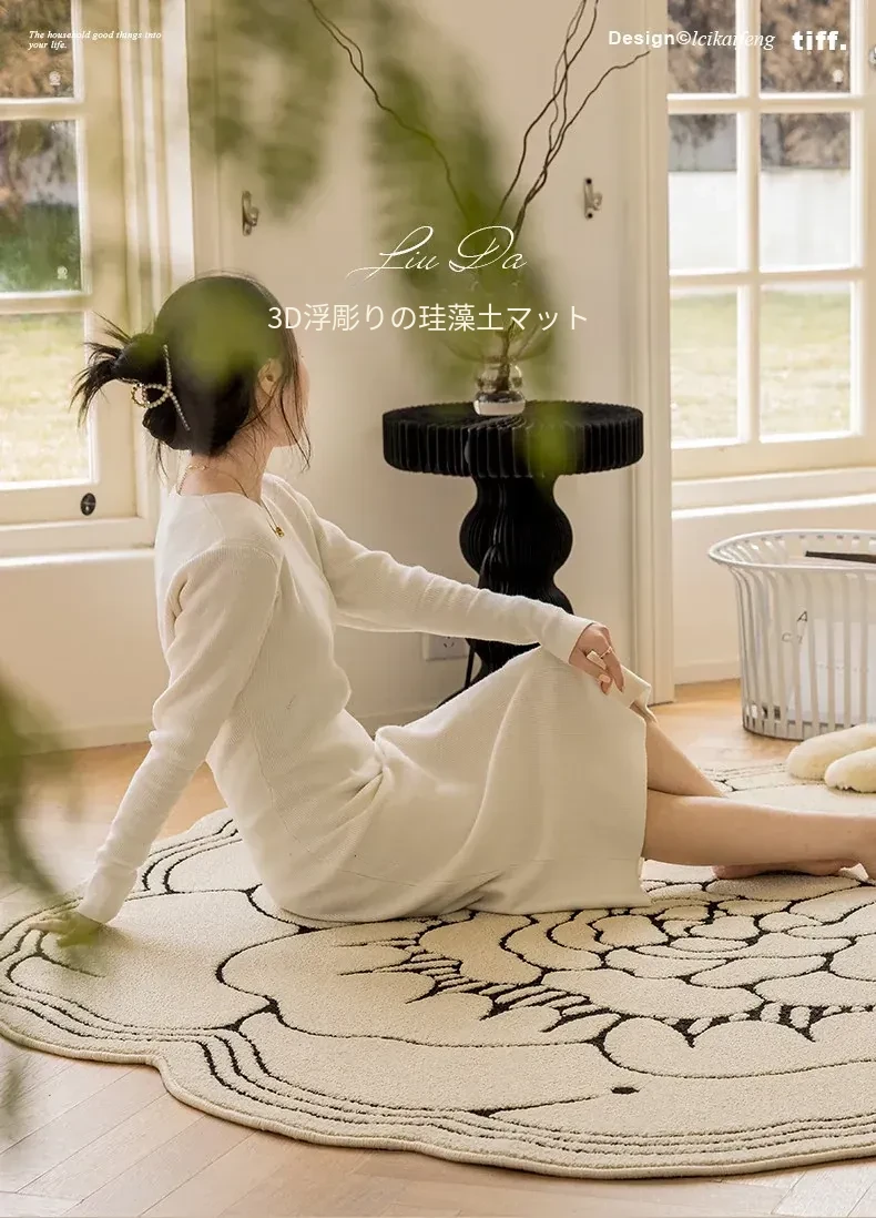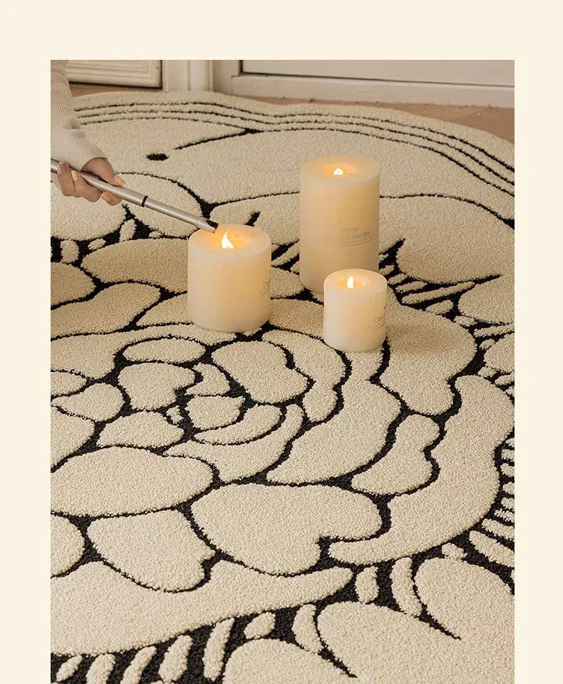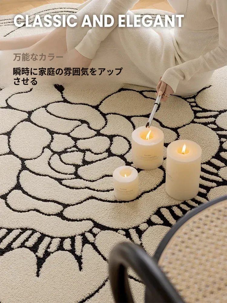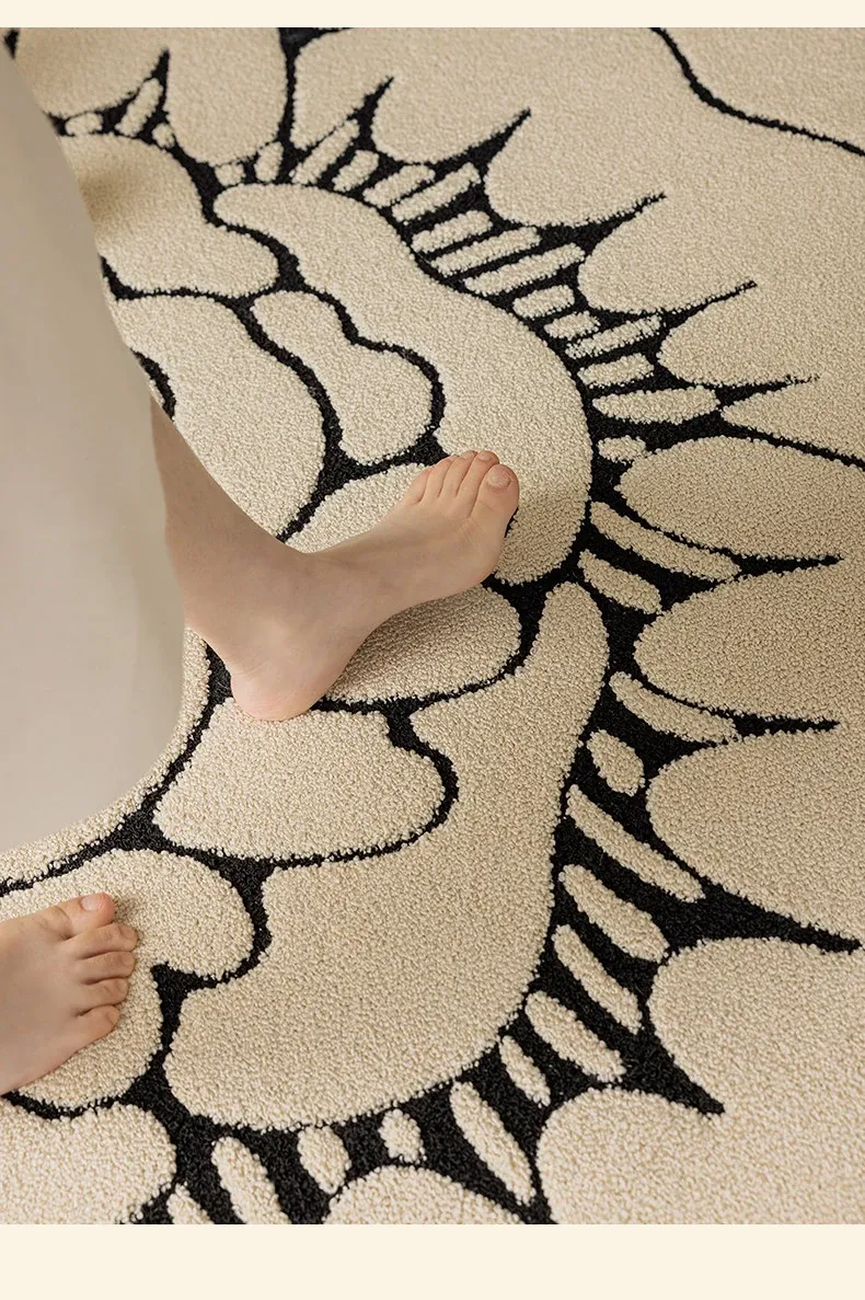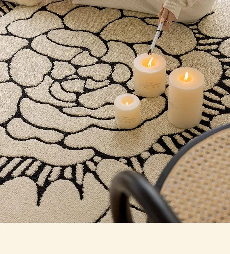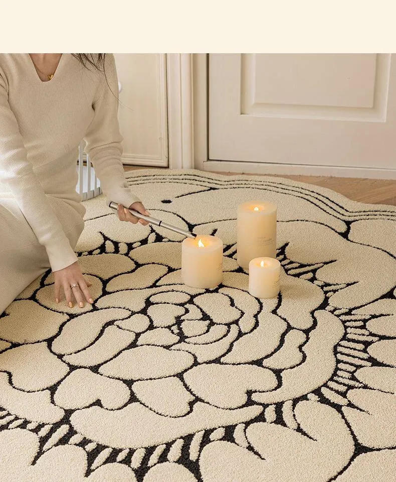 防水・汚れ防止!異形カメリアデザインのラグマット - 寝室・クローゼット・ベッドサイドにぴったり!お手入れ簡単で、リビングのソファやテーブルにも最適!