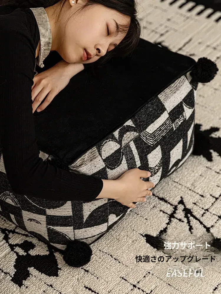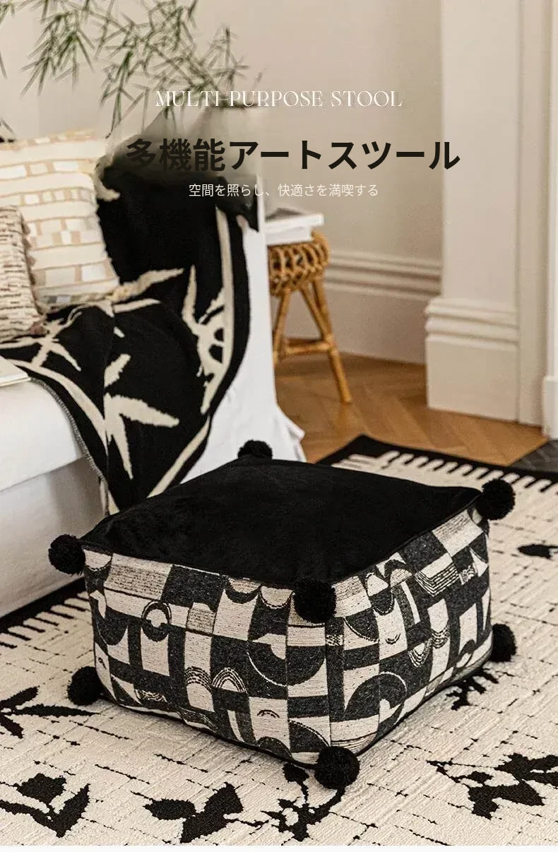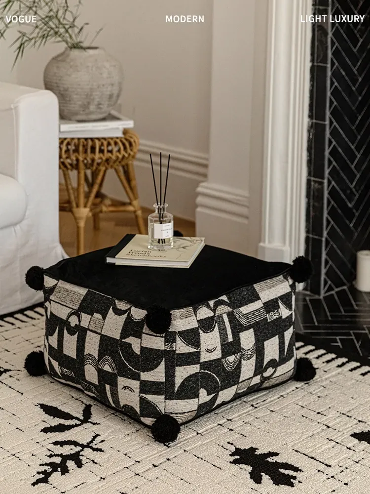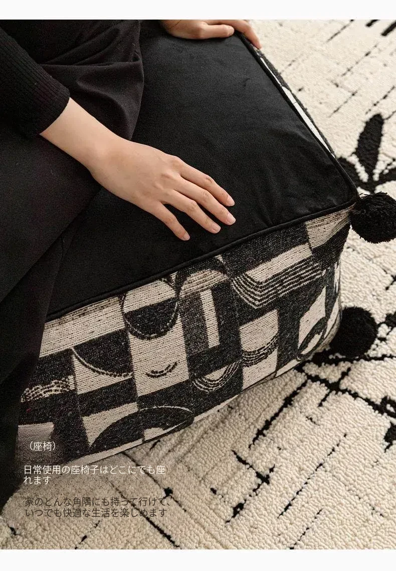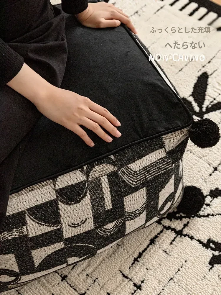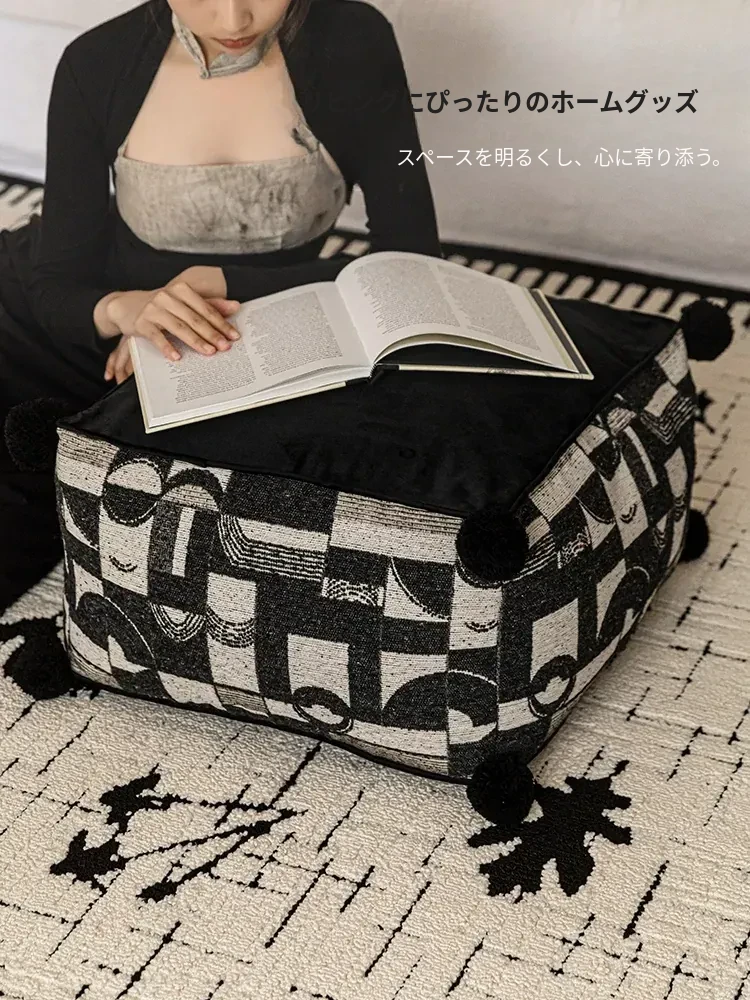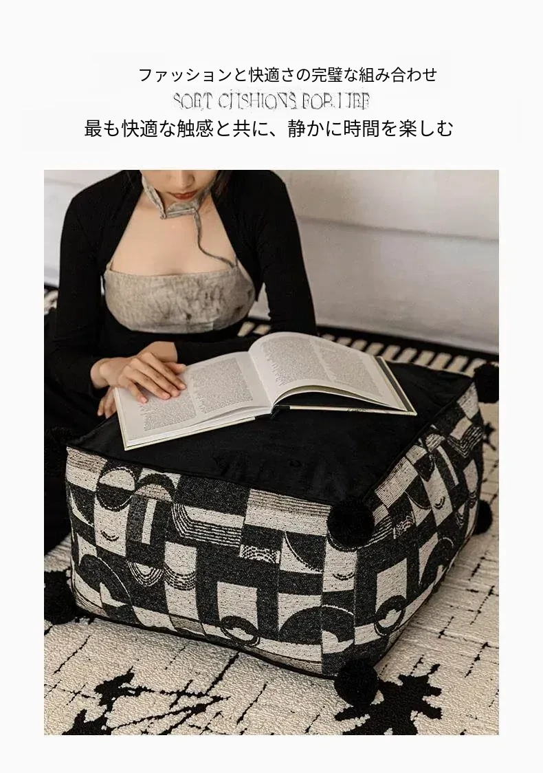 フランス風モノクロレトロデザインの中華スタイル、散尾葵模様のローズタッチクッションスツール。リビングルームにぴったりのラウンジソファ、カーペットとしても使用できる快適なアイテム!