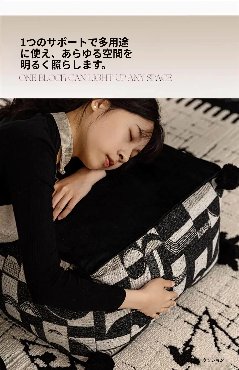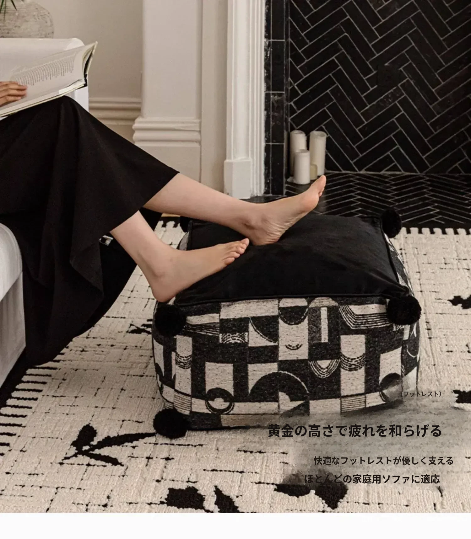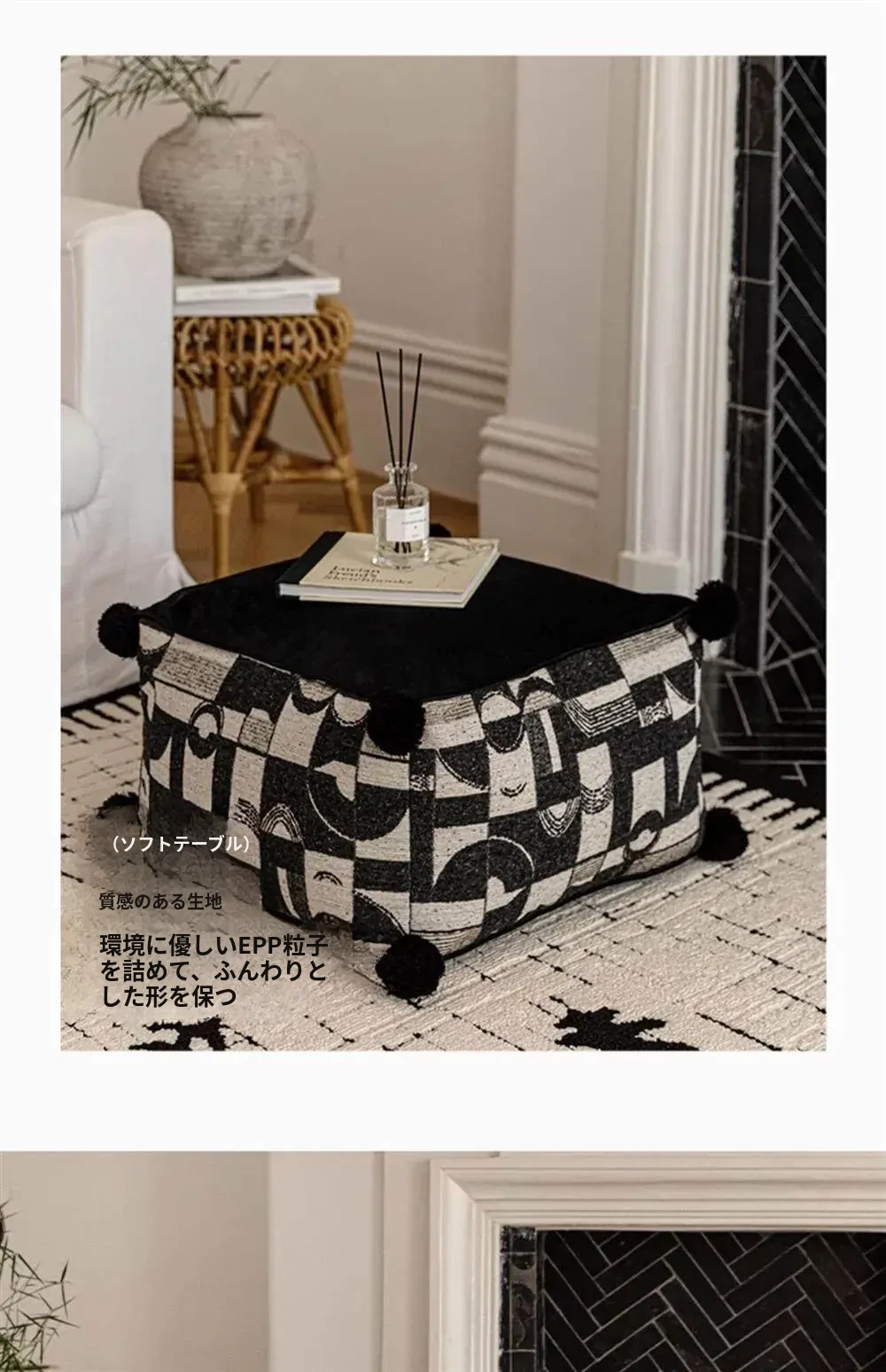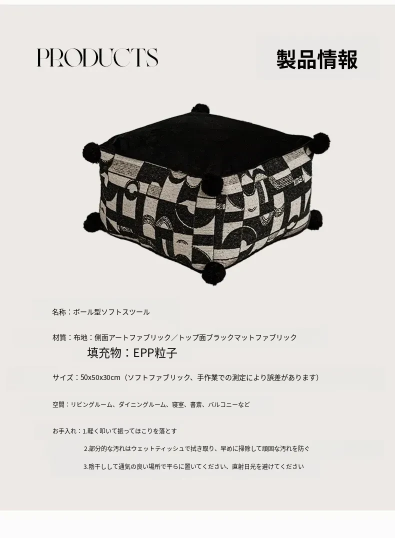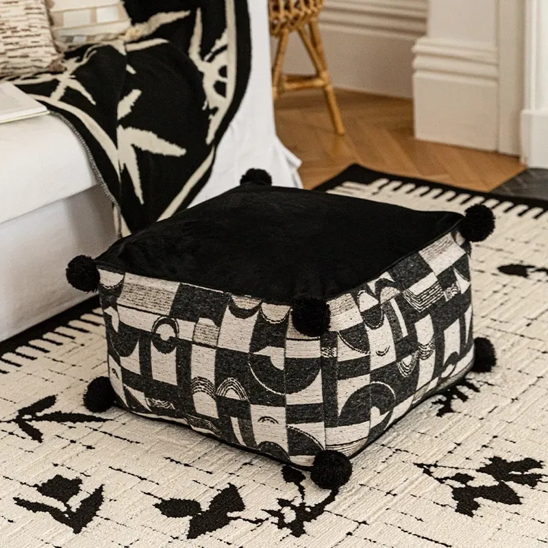 フランス風モノクロレトロデザインの中華スタイル、散尾葵模様のローズタッチクッションスツール。リビングルームにぴったりのラウンジソファ、カーペットとしても使用できる快適なアイテム!