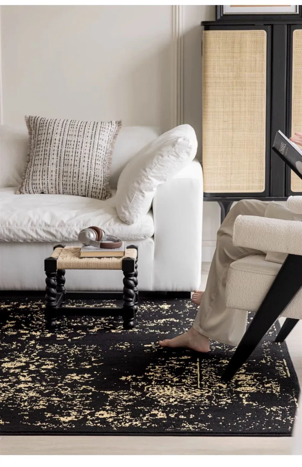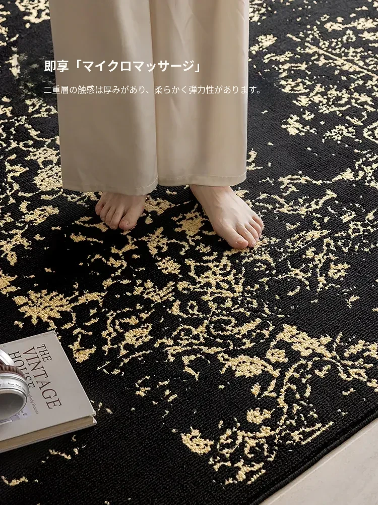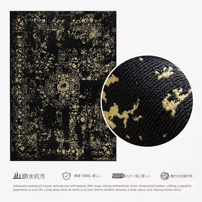 高級感溢れる中古風リビングカーペット|軽やかで防水・防汚機能付き|厚手で音を吸収し、耐久性抜群のベッドサイドマット|おしゃれな空間を演出する上質な一品!