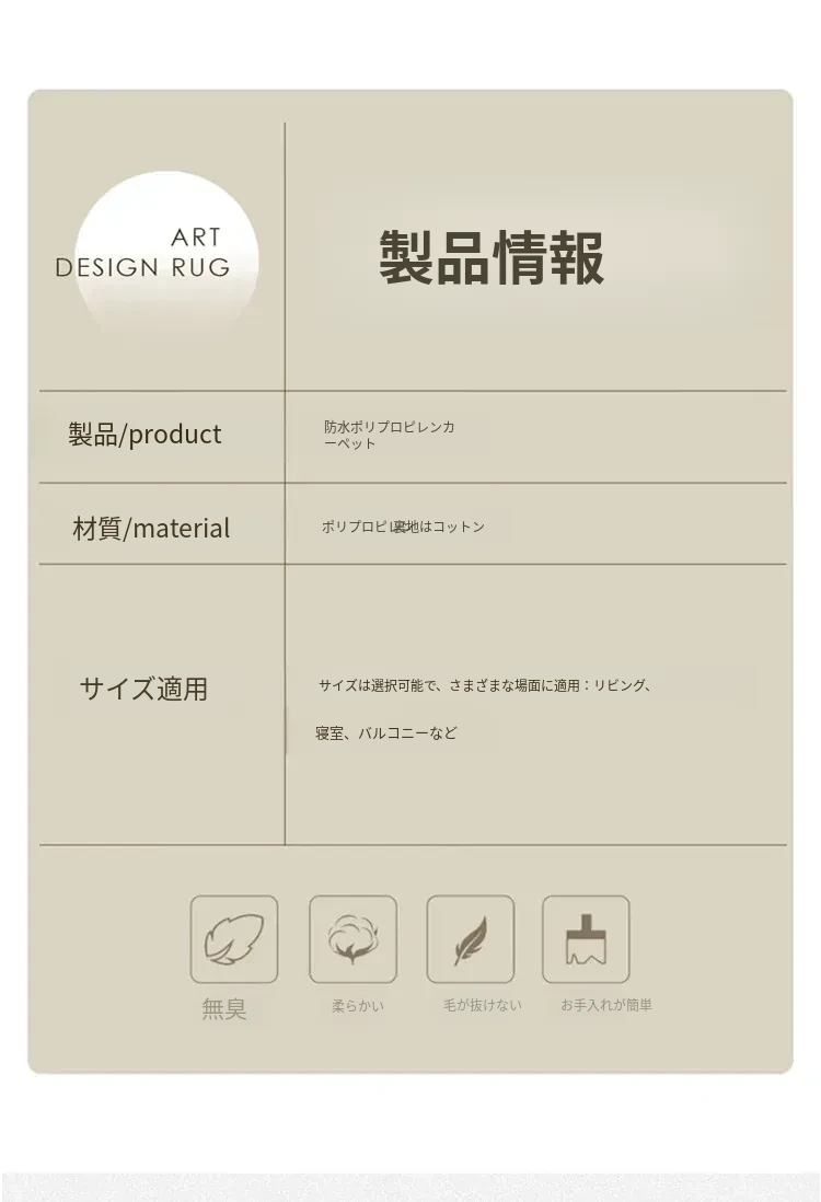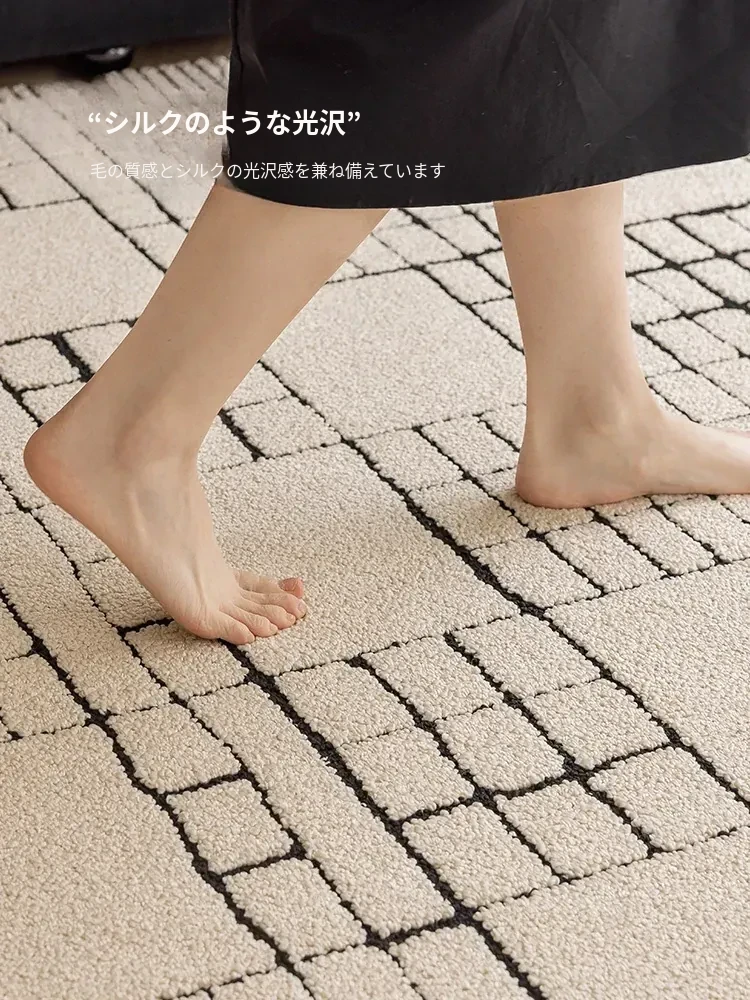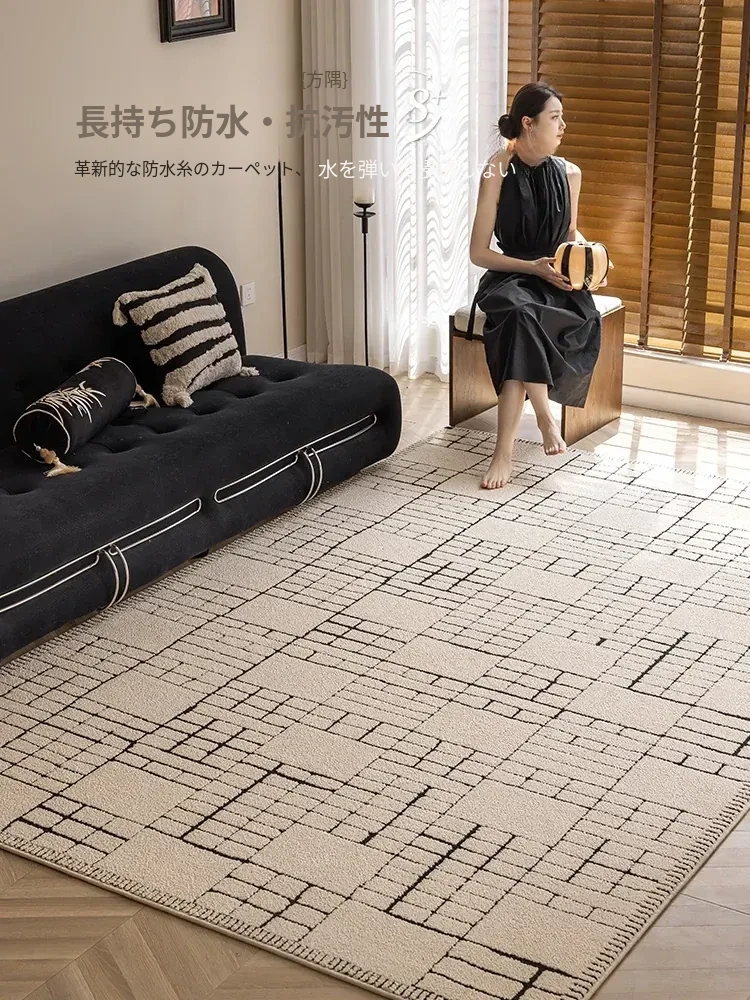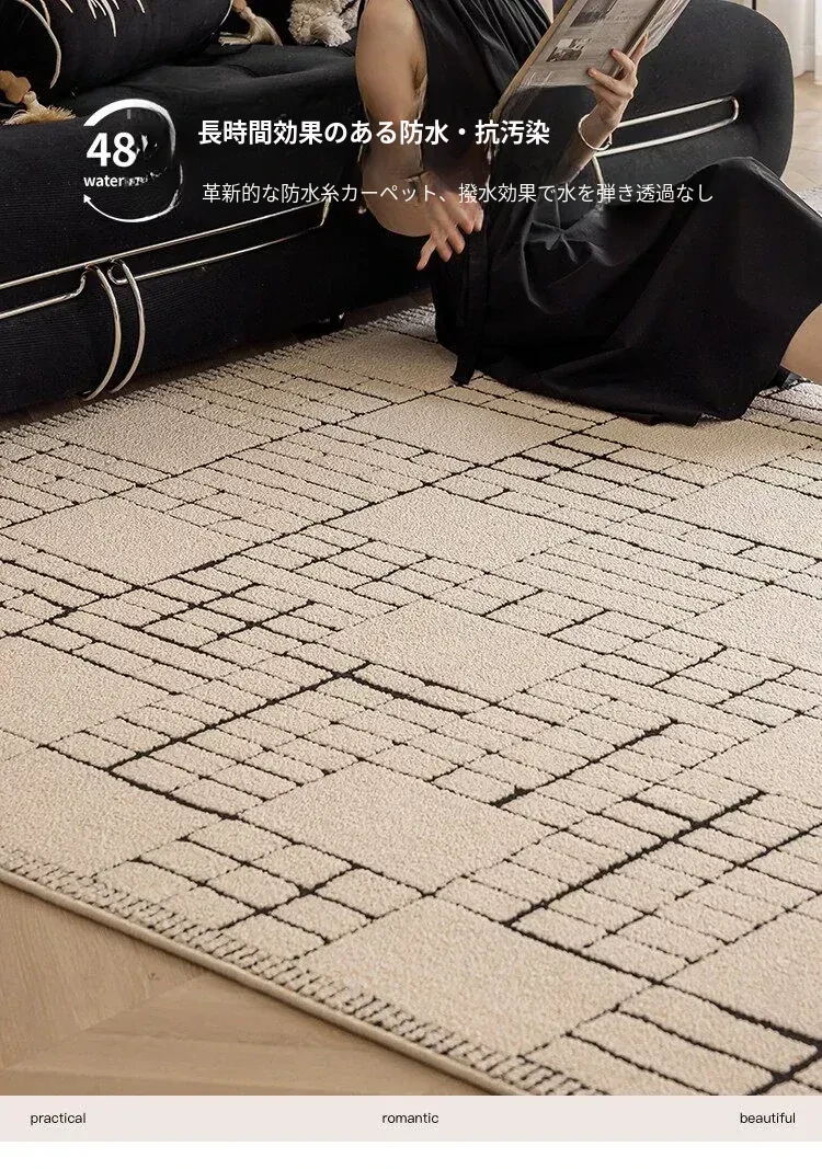 侘寂風インス風リビングルームラグ フランス風クリームソファブランケット 防水・防汚・お手入れ簡単 耐汚れのコーヒーテーブルマット