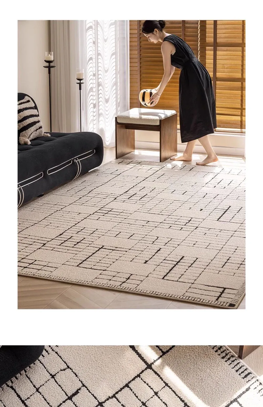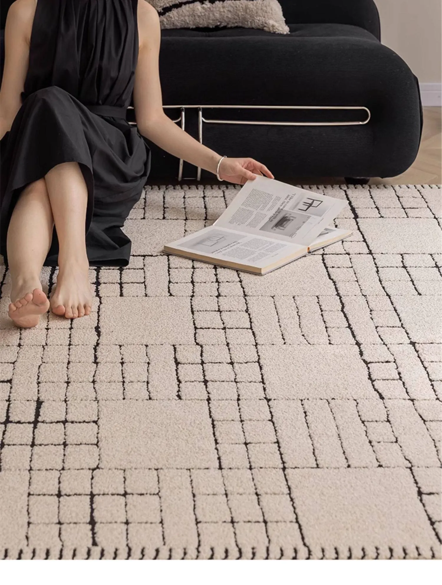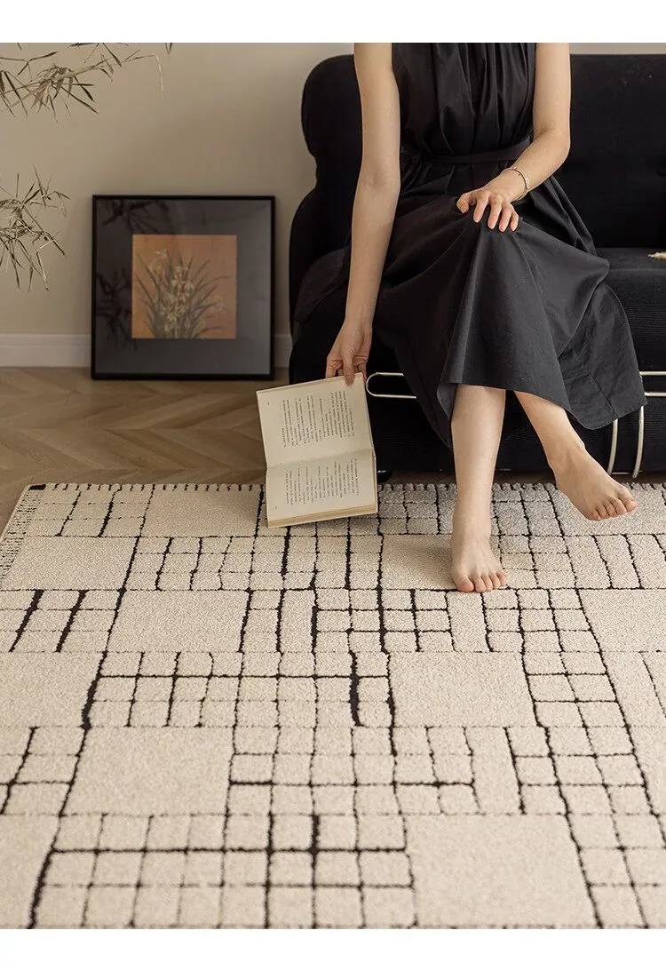 侘寂風インス風リビングルームラグ フランス風クリームソファブランケット 防水・防汚・お手入れ簡単 耐汚れのコーヒーテーブルマット