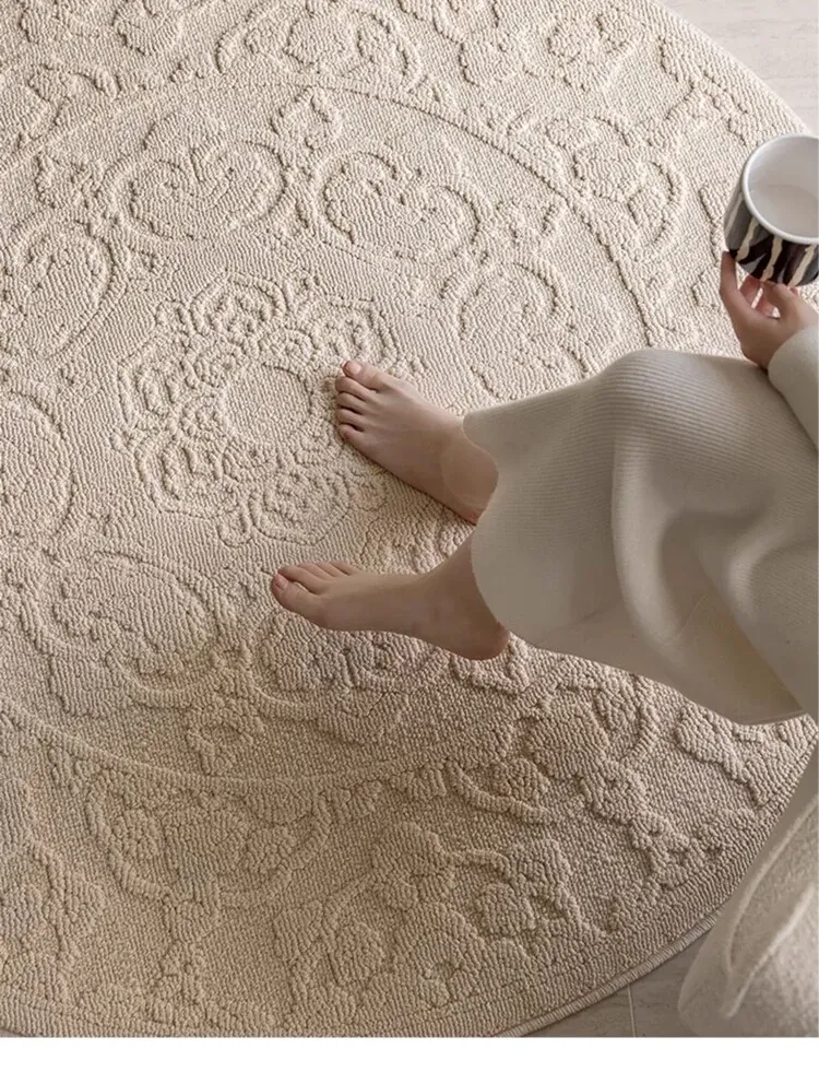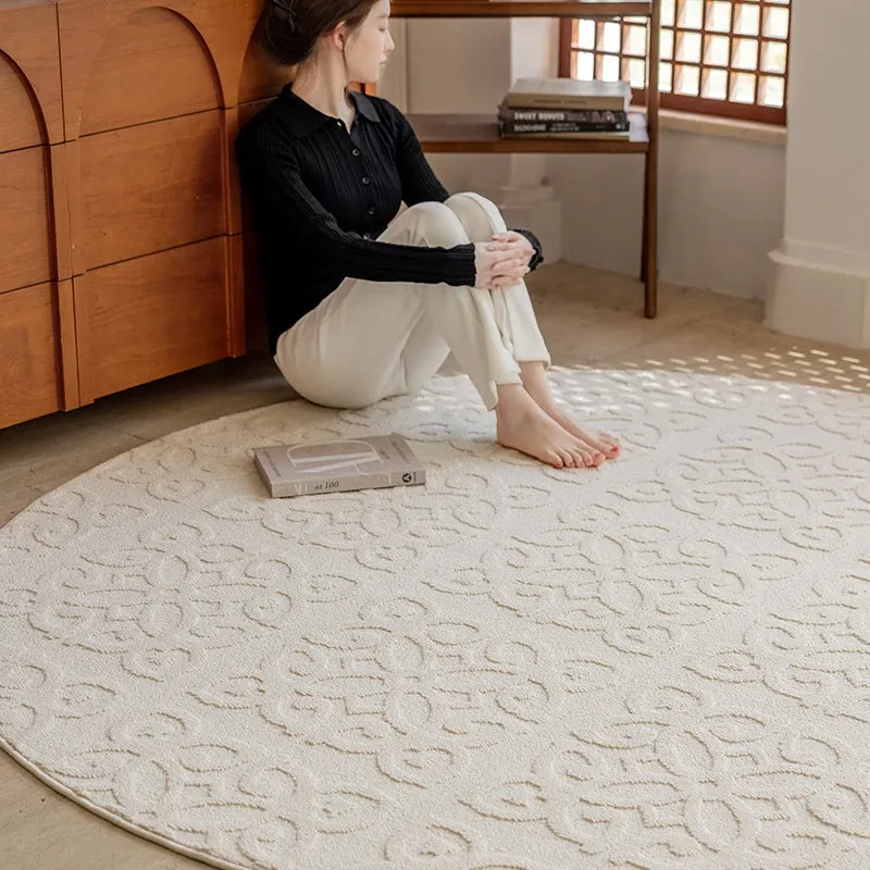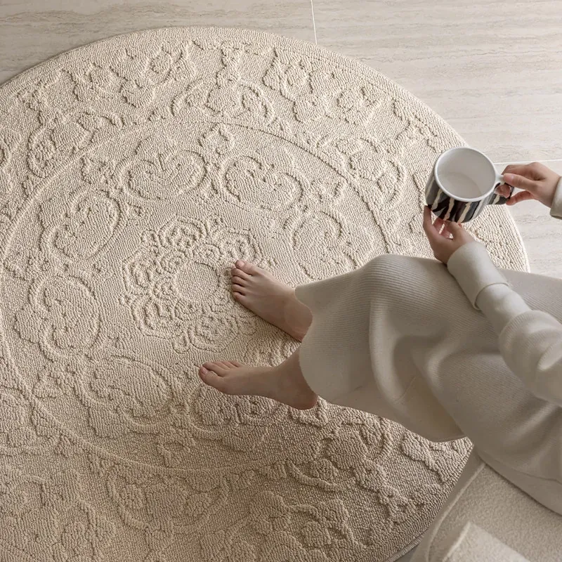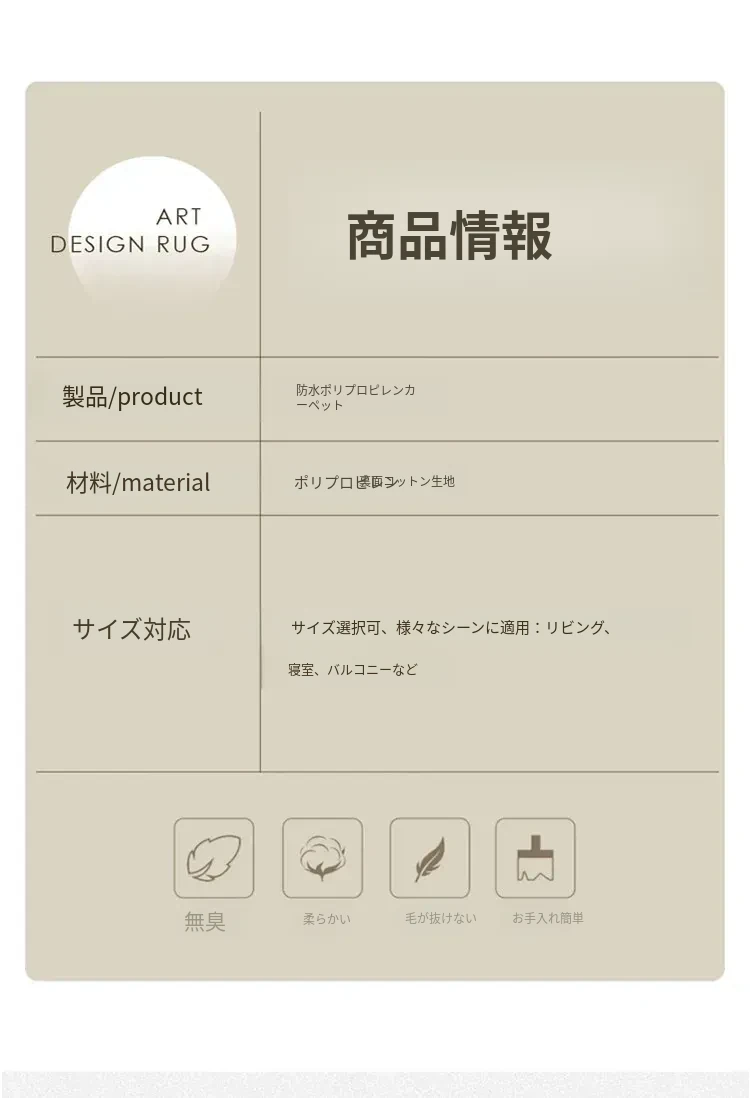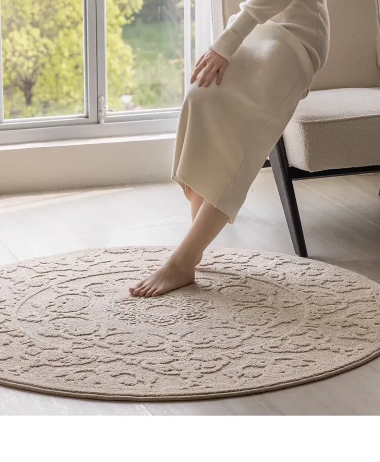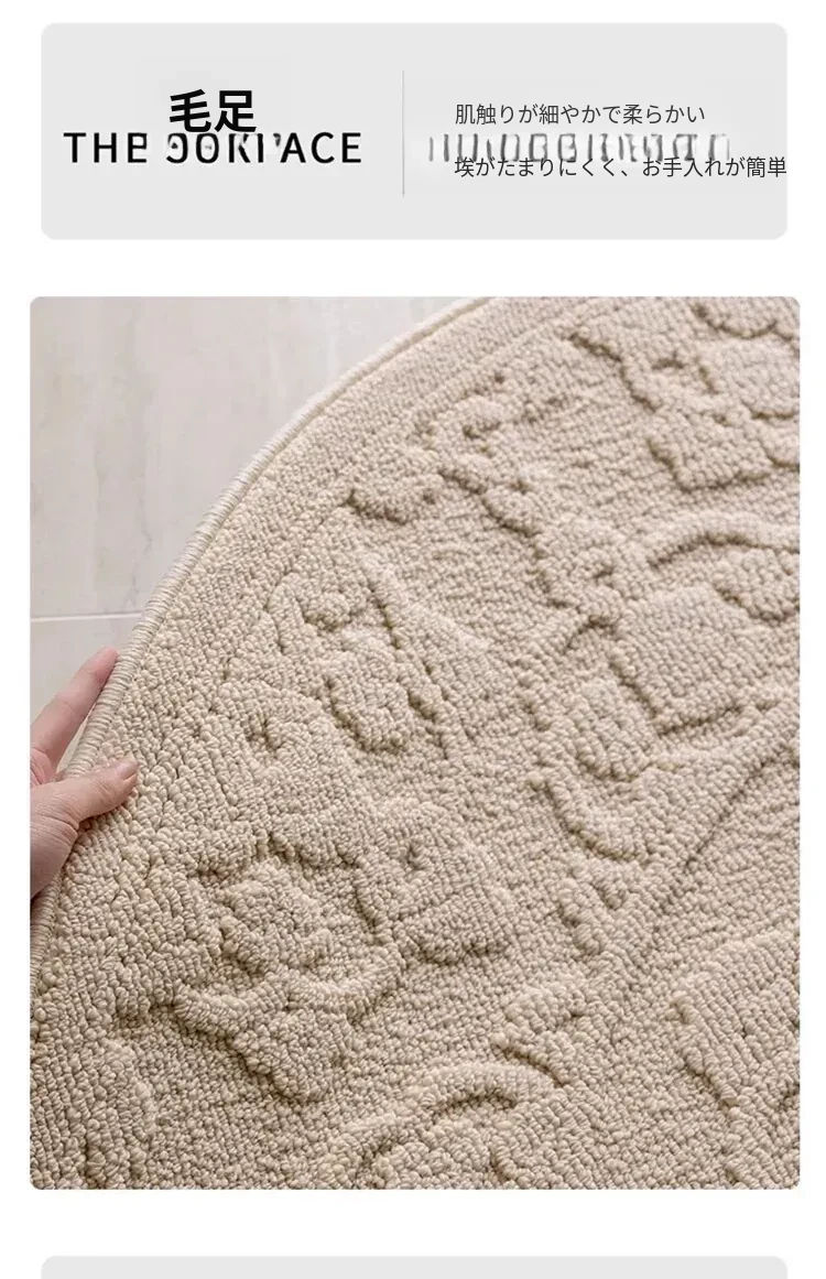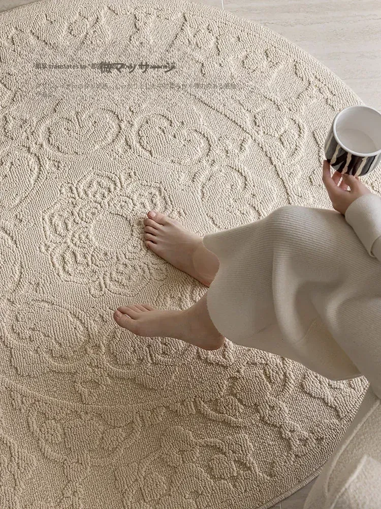 和の美しさを感じる侘寂インス風ラウンドカーペット - 防水・防汚機能付きで、リビングや寝室にぴったり!高級感漂う軽やかなデザインで、ソファやテーブルの下に最適。あなたの空間を一層素敵に演出します。