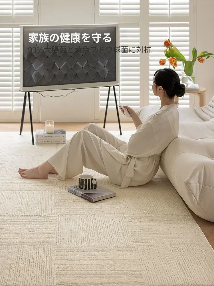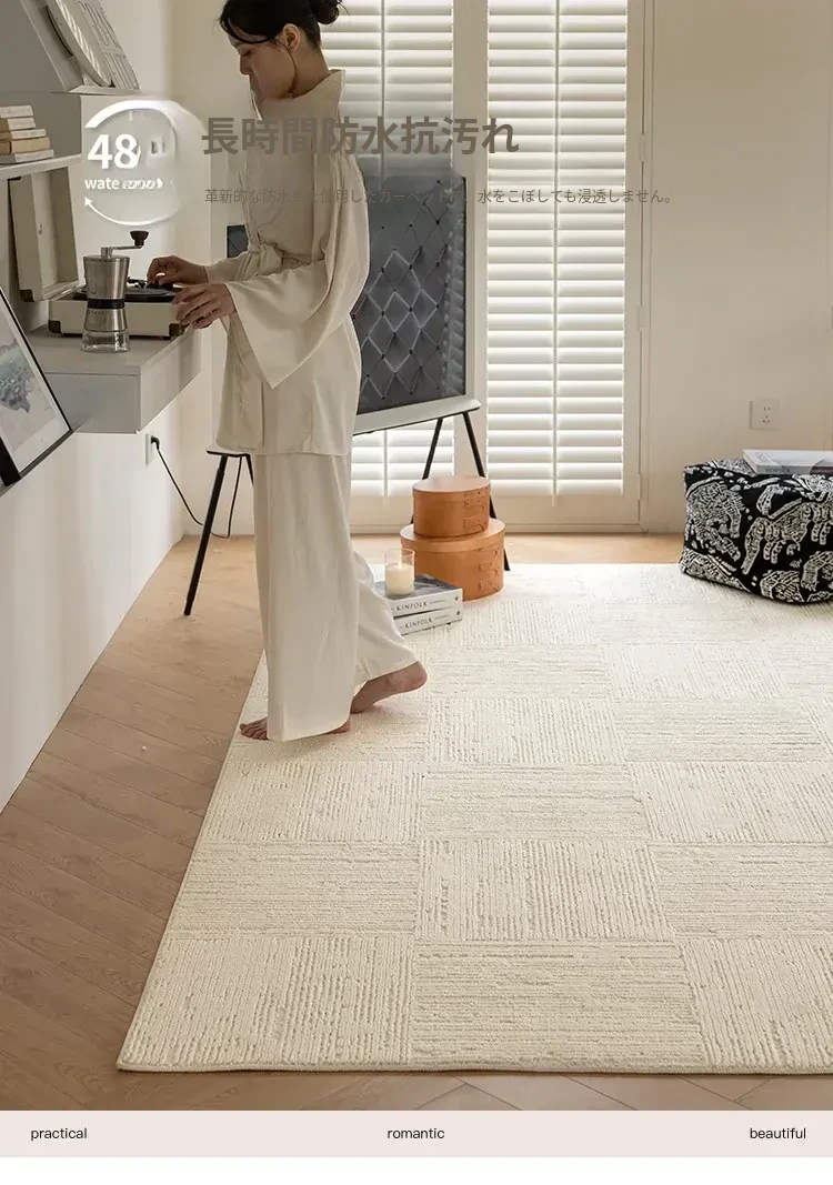和の美を感じる侘寂風インテリアカーペット - リビング、クローゼット、書斎、寝室に最適!防水・防汚でお手入れ簡単、ソファの上でも使える便利なマット。