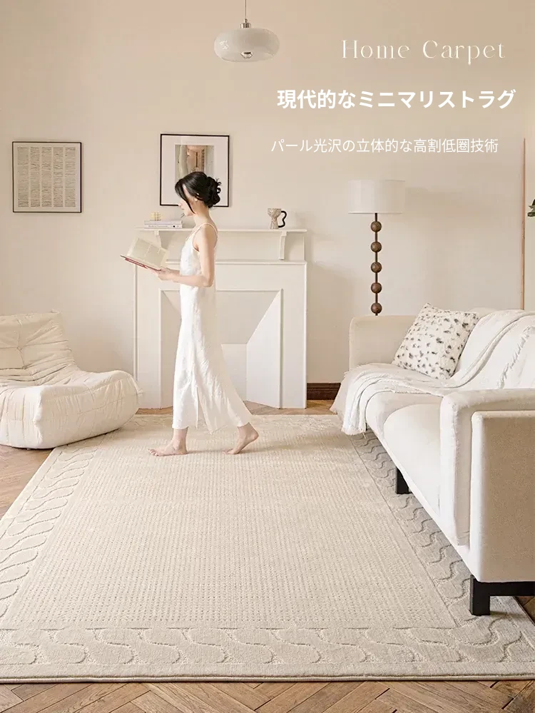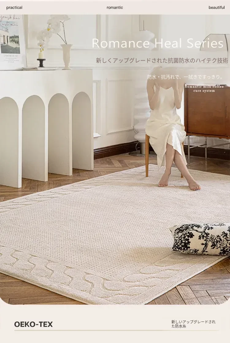 防水・汚れに強いリビング用ラグマット - 手入れ不要のこだわり侘寂デザイン、軽やかで上質なソファマット。シンプルでスタイリッシュな寝室にもぴったり!