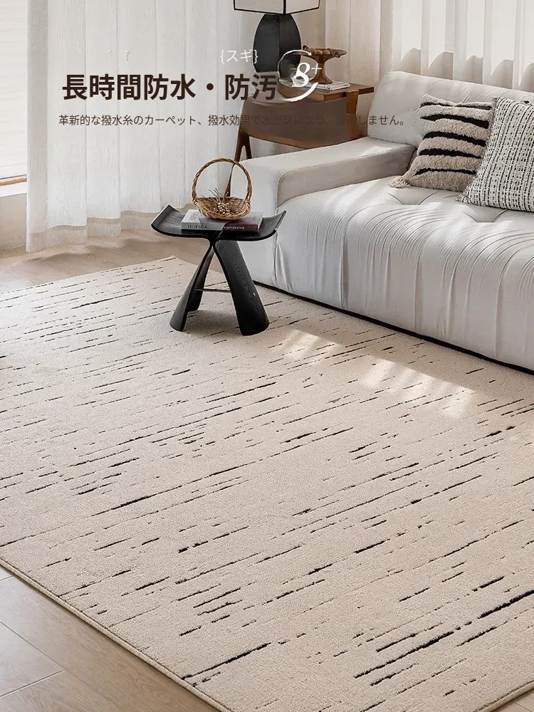 フレンチクリーム風防水防汚リビングラグ、手間いらずでお手入れ簡単!厚手で音を吸収する、テーブルやソファにぴったりのラグ。寝室のベッドサイドにも最適です!