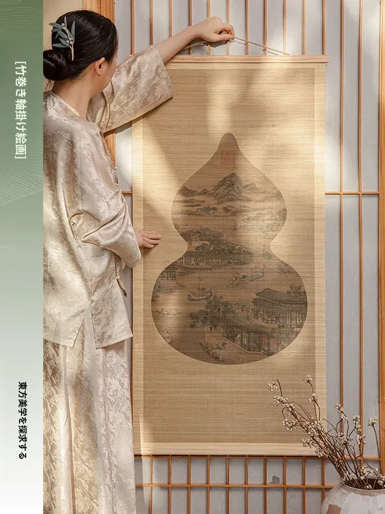 新中式風格の禅意の巻物掛け絵画 - リビングルームの背景壁にぴったりな古典的なフクロウと竹の装飾画で、福と繁栄をもたらす!