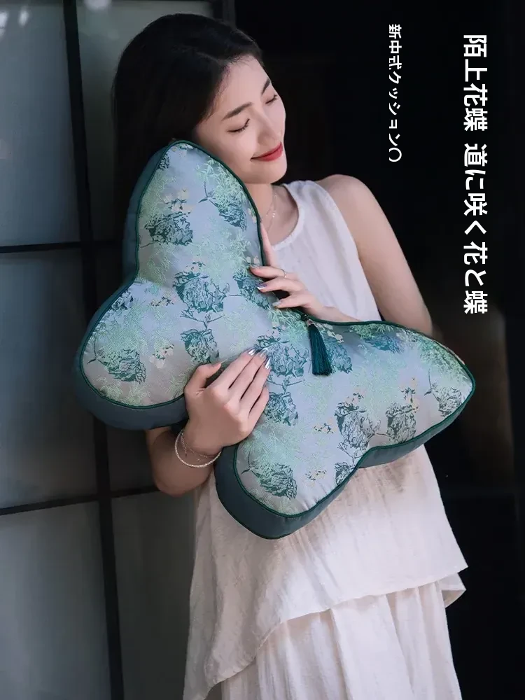 新中式レトロバタフライクッション - リビングルームやソファにぴったりの雰囲気を演出!寝室のヘッドボードや贈り物にも最適なラグジュアリーな腰枕。あなたの空間を華やかに彩るアイテムです!