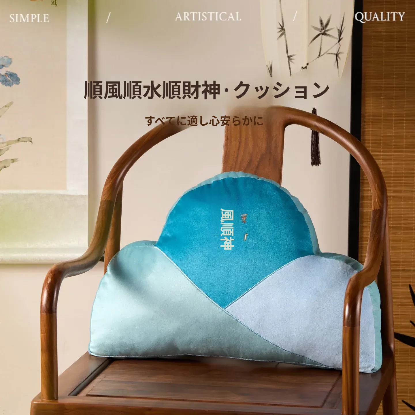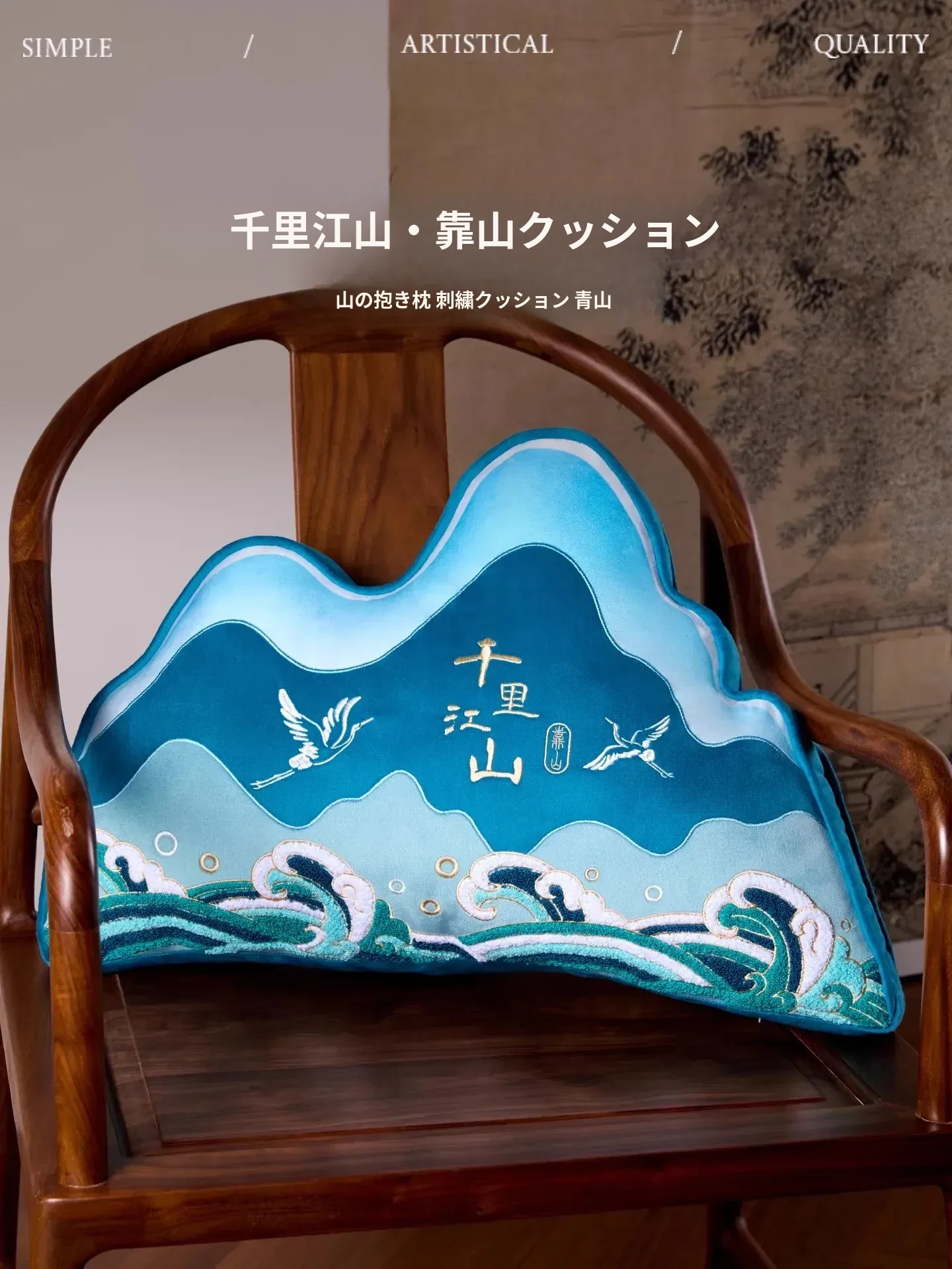 千里江山刺繍クッション|オフィスや車に最適な背もたれ|山型デザインで快適な睡眠と座り心地をサポート|太師椅子用座布団にも最適!おしゃれで実用的なアイテムです。