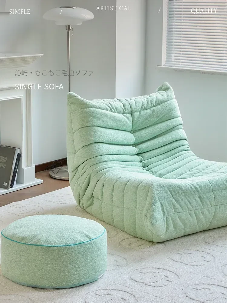 リラックスできる巨大な毛虫ソファ!寝転がっても寝てもOK!バルコニーや畳にぴったりの一人用ソファ。快適な寝心地とおしゃれなデザインで、あなたの部屋を素敵に演出します。