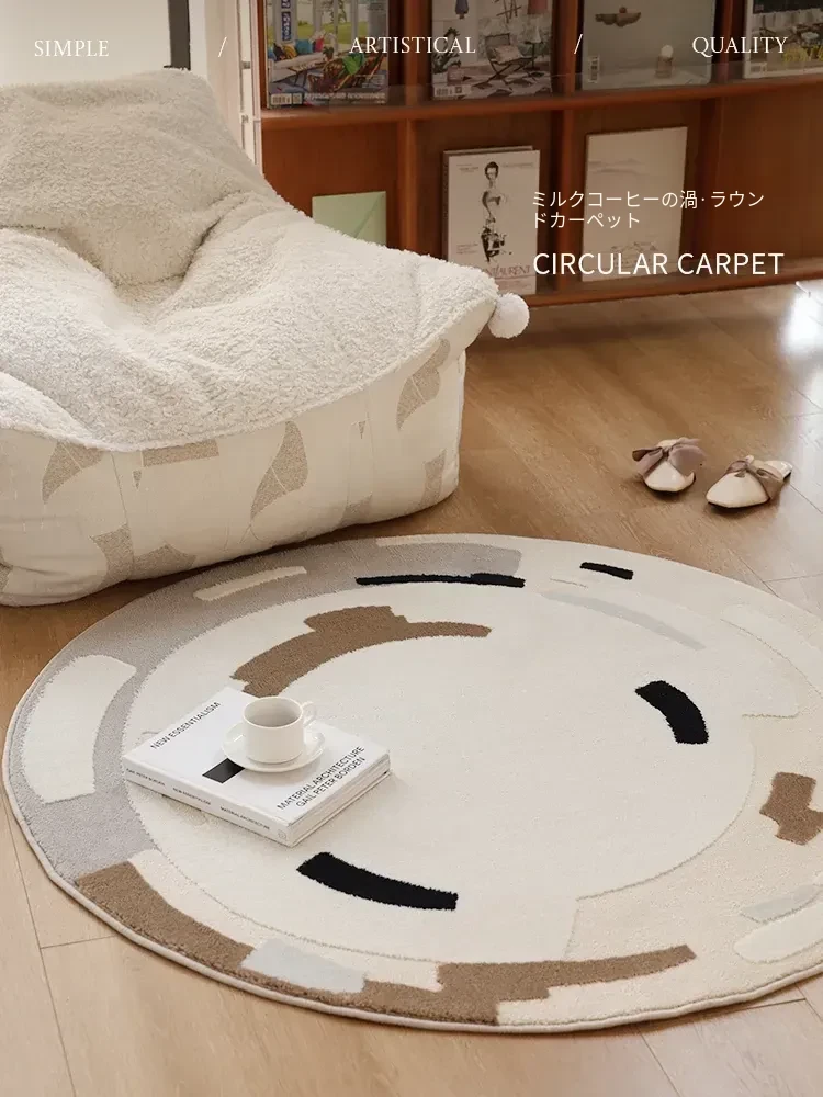 フレンチクリーム風防水防汚ラウンドカーペット - 寝室、クローゼット、デスクチェア、ソファ、コーヒーテーブルに最適なラグ!快適さとスタイルを兼ね備えた一品。