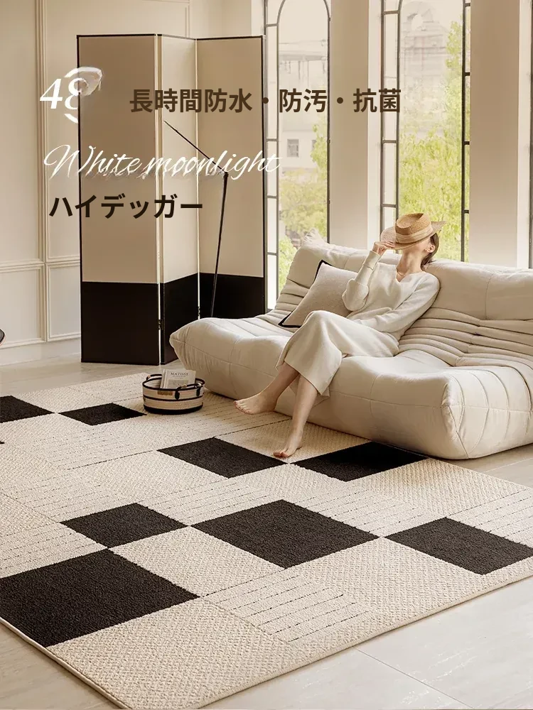 モダンデザインの高級リビングカーペット - シンプルでスタイリッシュ、メンテナンスフリーのソファカバー。防水・防汚で汚れに強い、テーブルマットとしても最適です。あなたの空間を一層引き立てるアイテム!