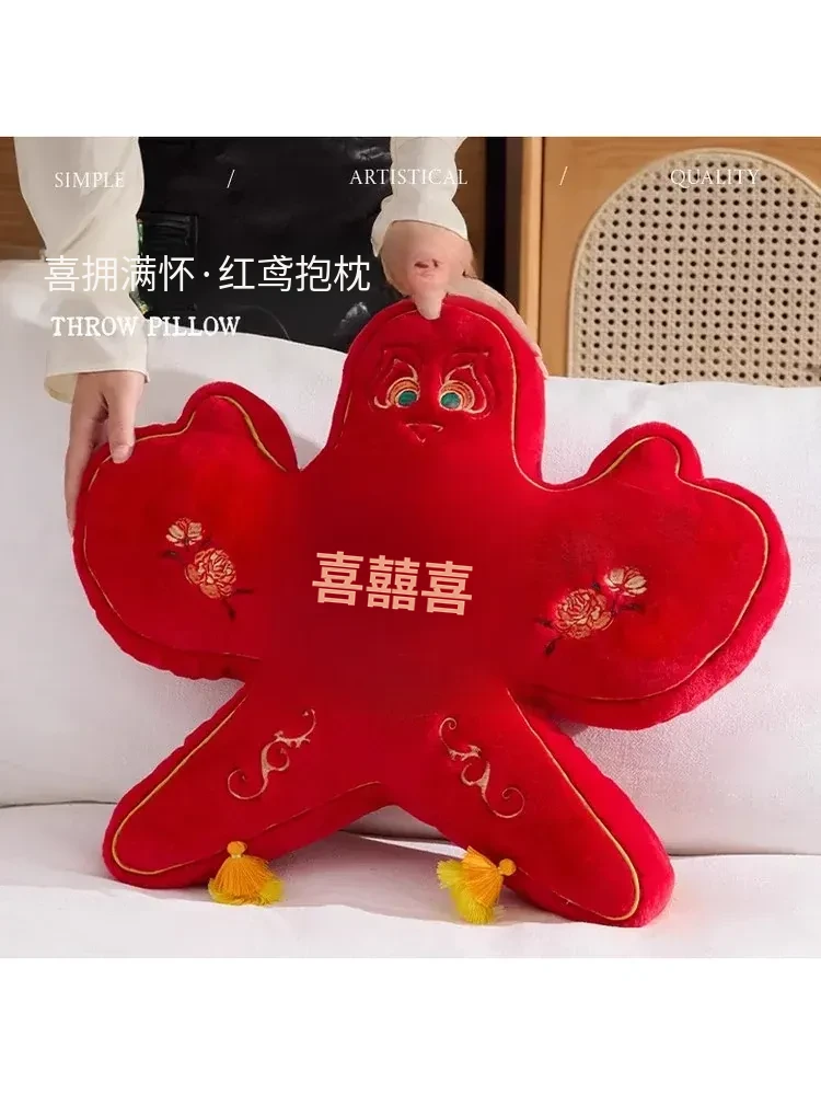 新中式喜字デザインの凧型クッション - 結婚祝いにぴったり!リビングやソファに最適な刺繍クッションで、婚房のインテリアを華やかに演出します。新婚生活を彩る特別なギフトに!