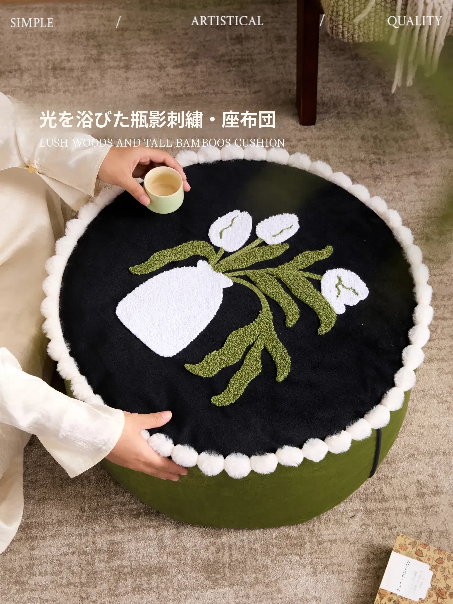 フランス風モノクロレトロデザインの中華スタイル、散尾葵模様のローズタッチクッションスツール。リビングルームにぴったりのラウンジソファ、カーペットとしても使用できる快適なアイテム!