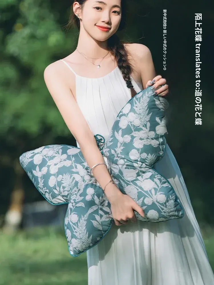 新中式デザインのバタフライクッション、リビングソファや窓際、ベッドで使えるユニークな形状のクッション。レトロな雰囲気と高級感を兼ね備えた腰サポートクッションで、居心地の良い空間を演出!