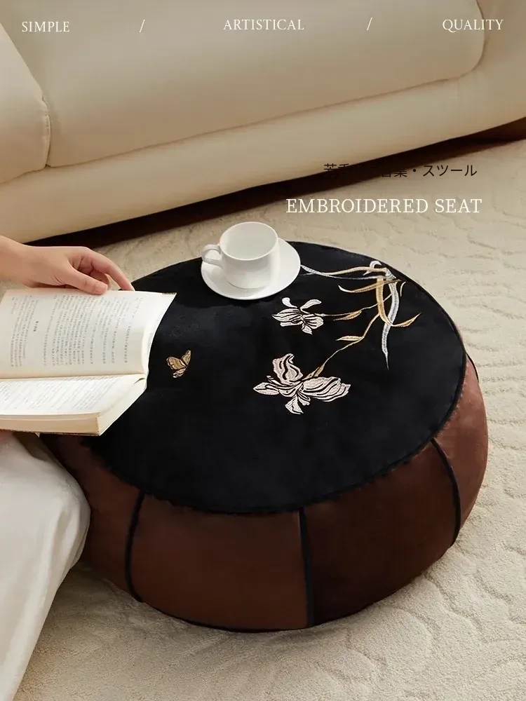 高級感溢れる中式刺繍のラウンドクッション - リビングや寝室、ティールームにぴったり!軽やかな贅沢を感じる畳や窓辺のアクセントとして最適な座布団です。