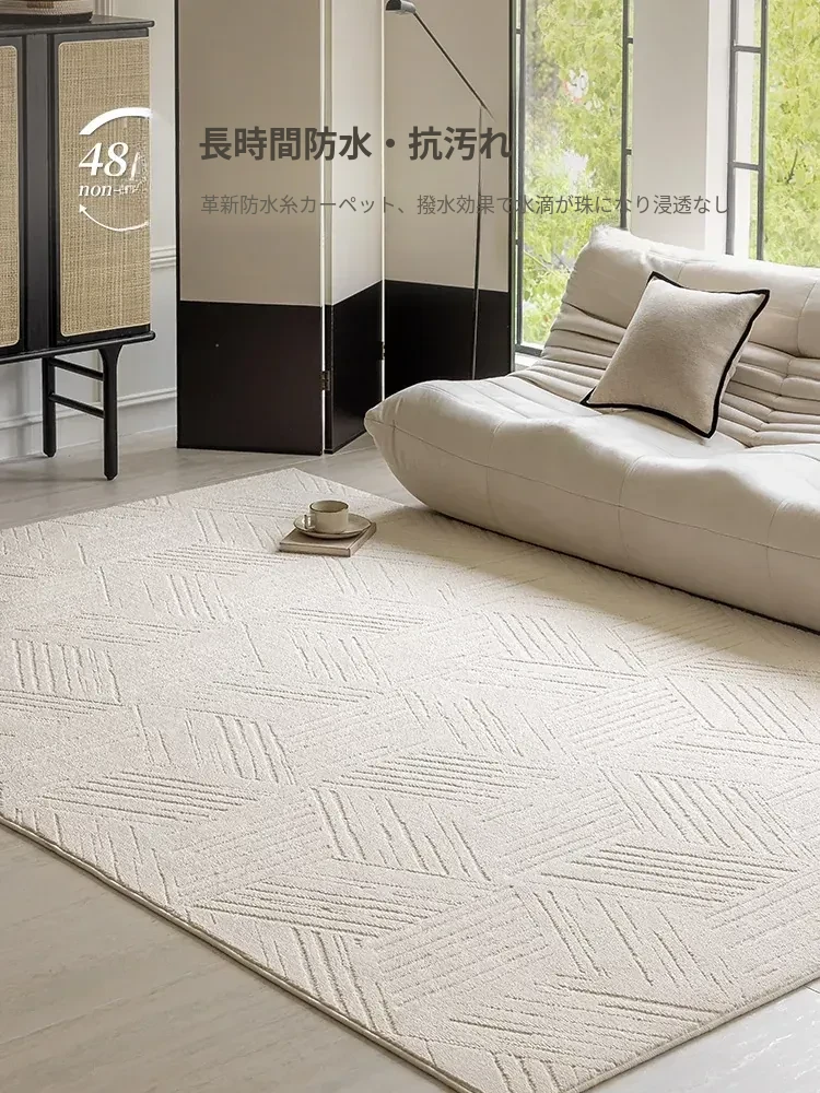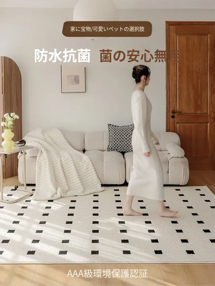 モダンミニマリストの防水・汚れ防止カーペット、軽やかな高級感。寝室やリビングにぴったり!お手入れ簡単で、茶色やソファに最適。耐汚れ設計で、毎日の生活を快適にサポートします。