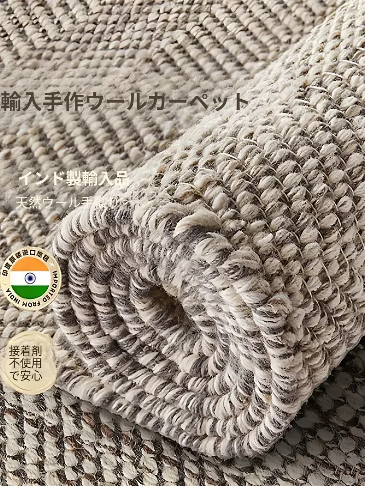 【インド輸入】手織りウールカーペット - グルー不使用、寝室やリビングに最適なシンプルなデザインのソファやテーブル用マット。高級感あふれる一品で、心地よい空間を演出します!