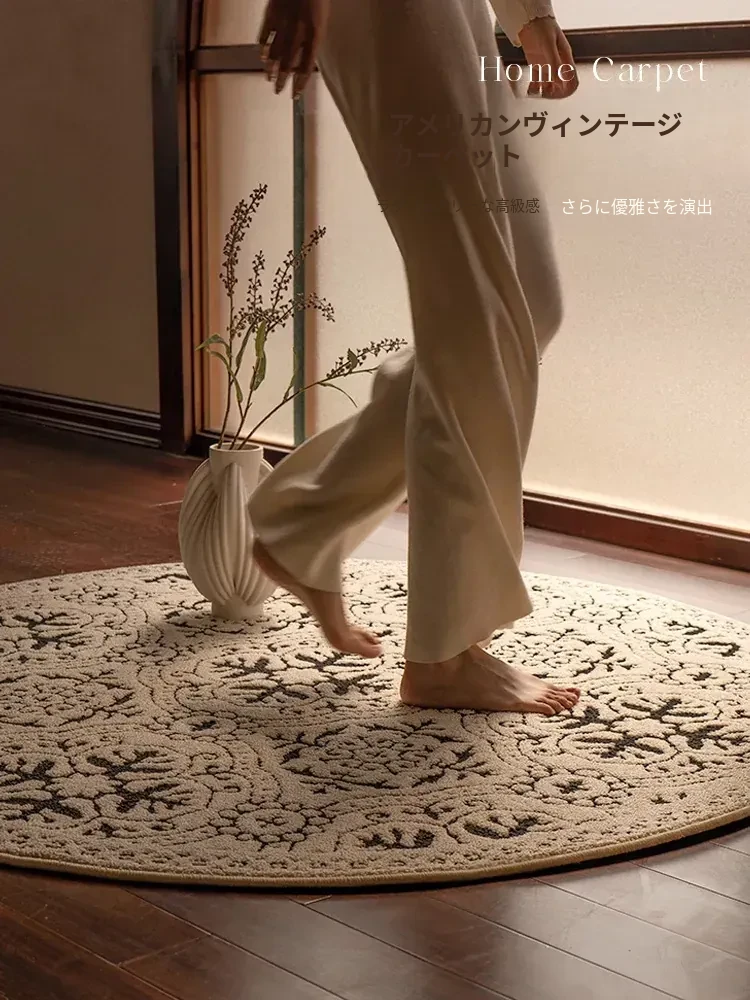 アメリカンヴィンテージラウンドカーペット|高級感あふれる防水仕様|フレンチスタイルのリビングにぴったり|軽やかなラグでお手入れ簡単|寝室やクローゼットにも最適!