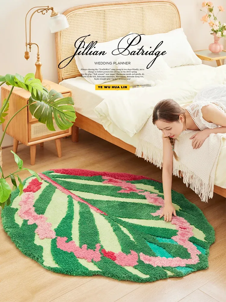 グリーンカラーの寝室・リビングルーム用ラグマット|田園風スタイルで軽やかさを演出|高級感あふれる柔らかな毛足|滑り止め付きで安心|クローゼットやベッドサイドに最適なフロアマット!