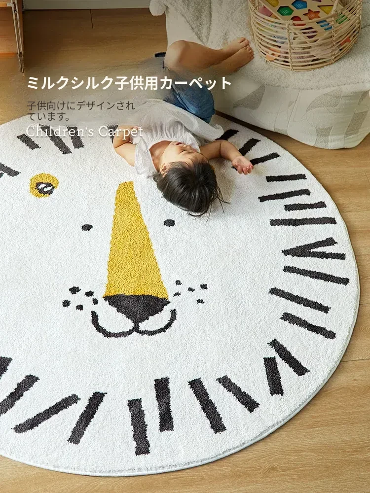 可愛らしい動物デザインの子供用ラウンドカーペット!寝室や書斎、遊び場、読書エリアにぴったり。子供たちの空間を楽しく彩る、おしゃれで快適なマットです!