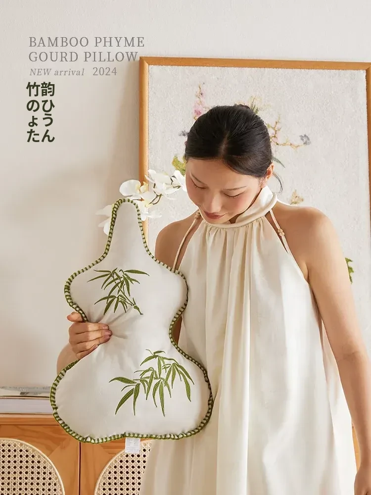 新中式デザインのユニークなひょうたん形ソファクッション - ラグジュアリーな感触と中国風の魅力を兼ね備えたリビング用抱き枕。ベッドサイドの背もたれとしても最適、クッション芯も含まれています。
