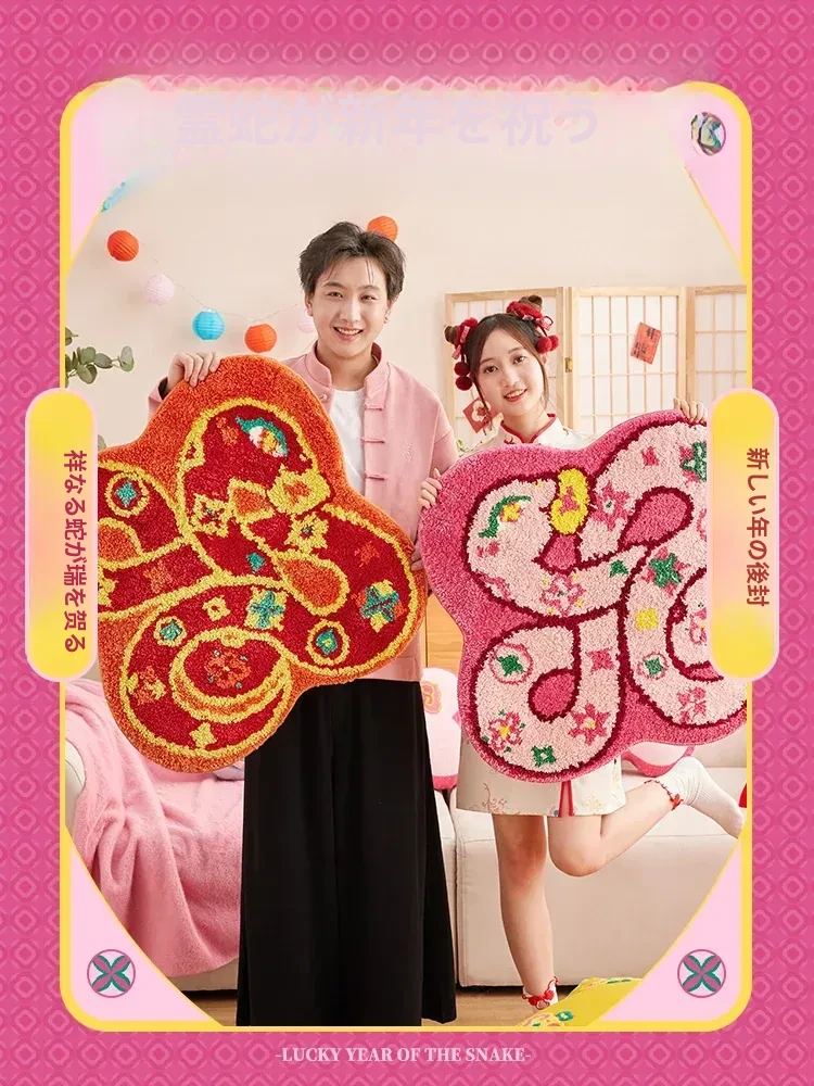 カワソン新年祝いのフットマット 家庭用入居ドアマット 赤いお祝いデザイン カット可能なリビングルームソファカーペットで、華やかな新年の雰囲気を演出しよう!