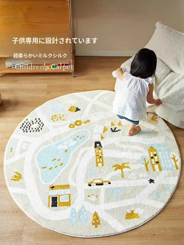 可愛いキャラクターの子供部屋用ラウンドカーペット|読書スペースやベッドサイドにぴったり!シンプルで高品質、滑り止め機能付きで安全性もバッチリ!